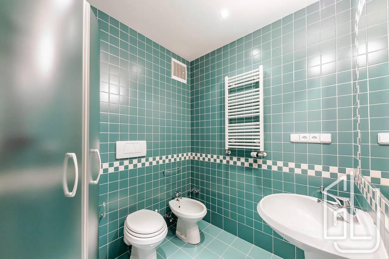 Byt je vybaven vestavěnými skříněmi, kvalitními parketami z masivního dřeva, italskými obklady v koupelnách, pračkou se sušičkou, myčkou, mikrovlnnou troubou, plynovým topením, alarmem a satelitním připojením.
