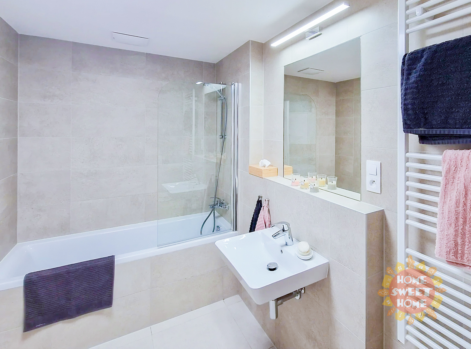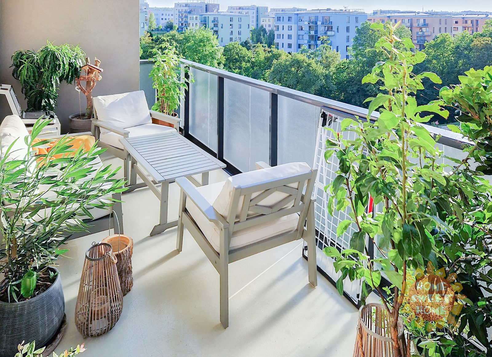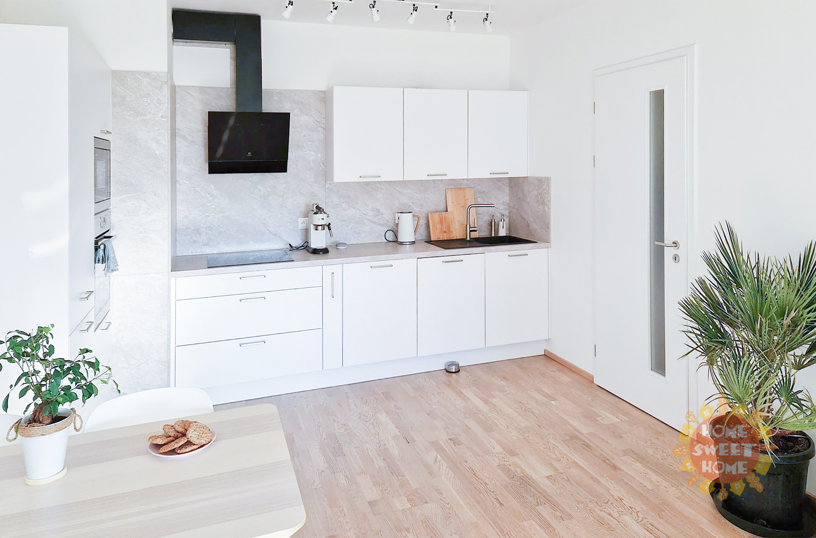 The interior is fully and tastefully furnished with premium furniture and appliances. The kitchen is equipped with AEG appliances, including an induction hob, dishwasher, and coffee maker. The living area features a comfortable sofa, a Samsung Smart TV, and a full workspace with an ergonomic chair and monitor. The bedroom is fitted with a bed featuring a quality mattress and built-in wardrobes. Maximum comfort is ensured by remote-controlled exterior blinds, a washer-dryer, a robotic vacuum cleaner, and high-speed internet (1000 Mbps). The southwest orientation and large balcony with outdoor seating and greenery offer a beautiful view of the river meander.