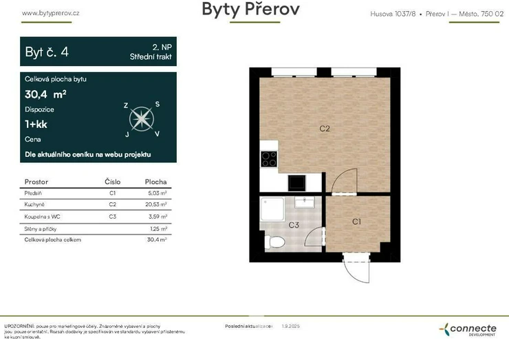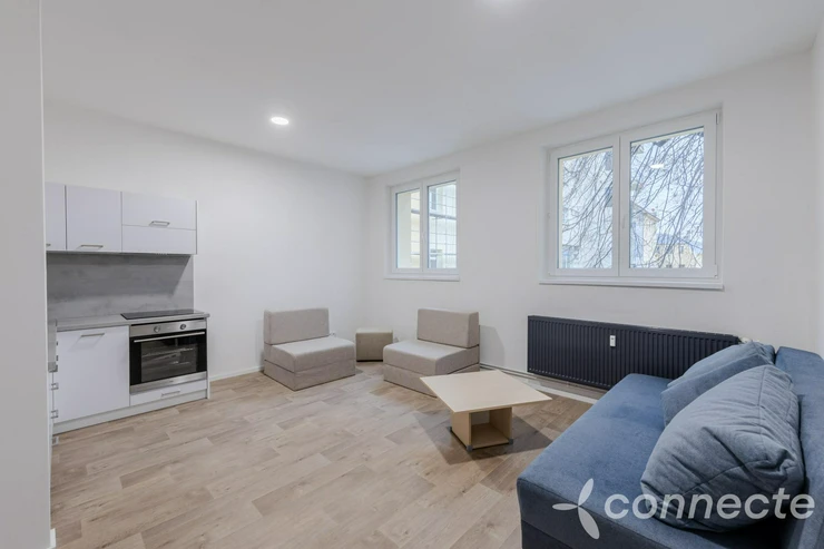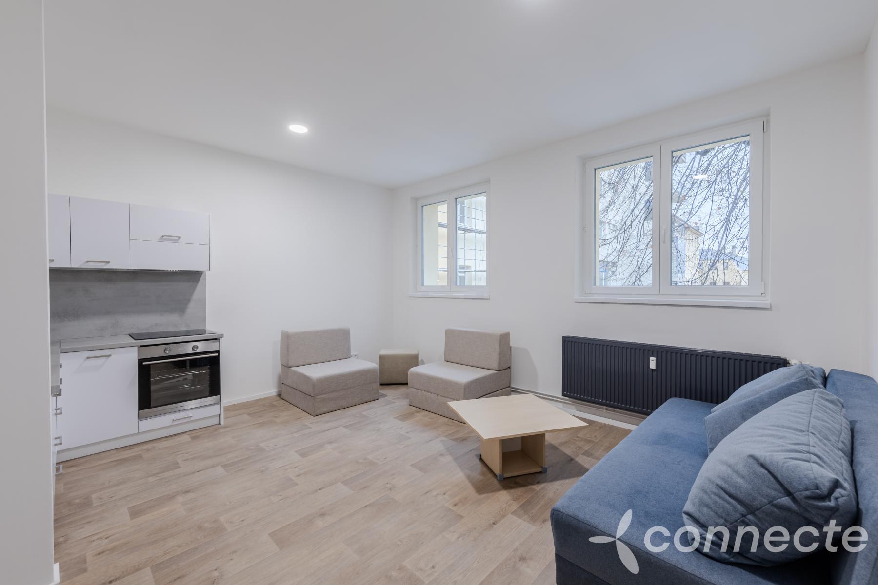 We are offering a modern 1+kk flat for long-term rent, with a floor area of 30.4 m2, situated on the 2nd floor of a fully refurbished brick building in the very centre of Přerov.