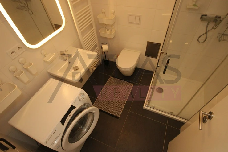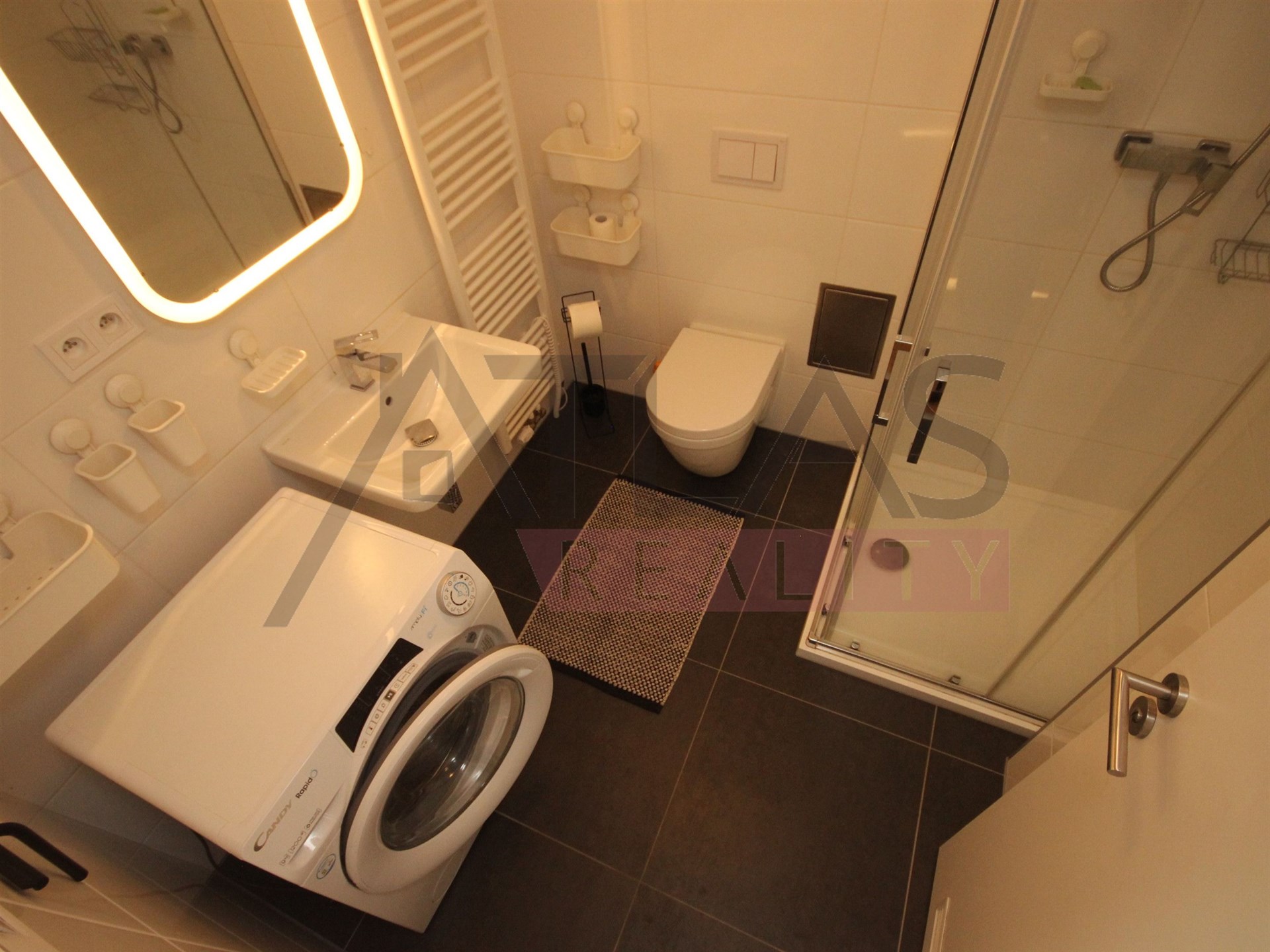For rent an unfurnished one bedroom apartment 47 m2 on the ground floor of a new apartment building with a large terrace of 68 m2. The kitchen is fully fitted with appliances (induction hob, electric oven, dishwasher, extractor hood, fridge with freezer). Wooden floating floor on the floors in the rooms, tiles in the bathroom. The apartment is warm, the orientation of the apartment is southwest - the sun shines from about 11 a.m. to 7 p.m., a large 6 m awning on the terrace and garden furniture and a small garden house for storing things are available. The apartment also includes a storage cellar in the basement of the house. Parking is possible on a reserved outdoor parking space in front of the house. The owners do not want pets and smokers in the apartment. The apartment is freshly painted and cleaned. The owner requires a security deposit (amounting of two months' rent + 2 x advance payment for utilities). Available immediately.