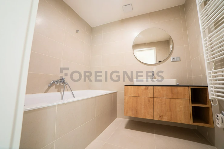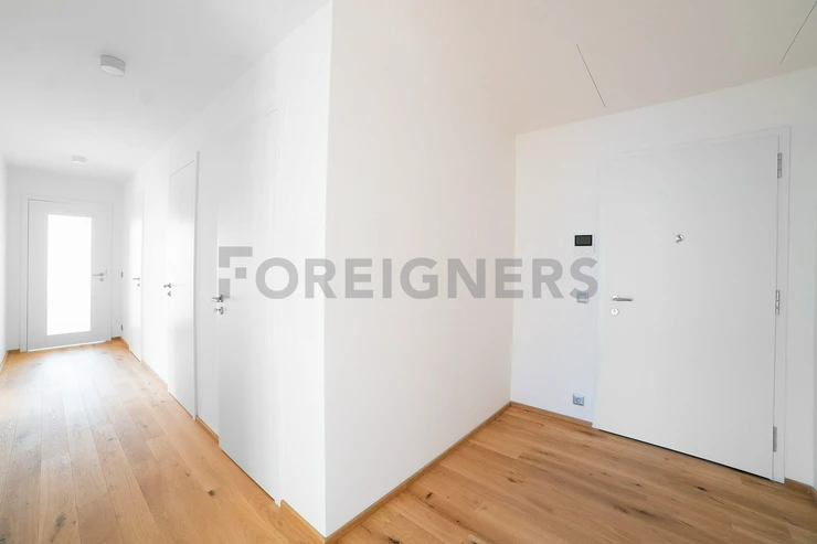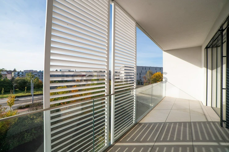 In the apartment itself you will find a bathroom that has a bathtub with a shower screen. Beautiful balcony 13m2 with a view. Technical room for the location of the washing machine and dryer, where there is also recovery, which is distributed throughout the apartment and ensures fresh air and an optimal climate. Wooden oak floors with underfloor heating give the apartment a cozy and pleasant look and thermal comfort, as well as triple-glazed aluminum windows and outdoor integrated blinds that allow you to regulate the amount of light in the apartment according to your preferences.
