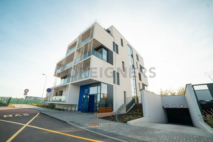 The apartment is located on the third floor (4th floor) with a total area of 71.9 m2.In this apartment, the emphasis is on renewable energy sources, all heating (and possibly cooling) in the apartments is therefore provided by a system of 120 ecological (over 100 meters deep) geothermal wells equipped with ground/water heat pumps.
