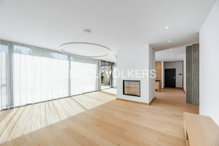 The highlight of the apartment is a beautiful, spacious living room with a fireplace, connected to a modern kitchen with full equipment. In addition, the apartment features three separate bedrooms, walk-in closets with built-in storage, two bathrooms with a shower and bathtub, and a separate toilet.