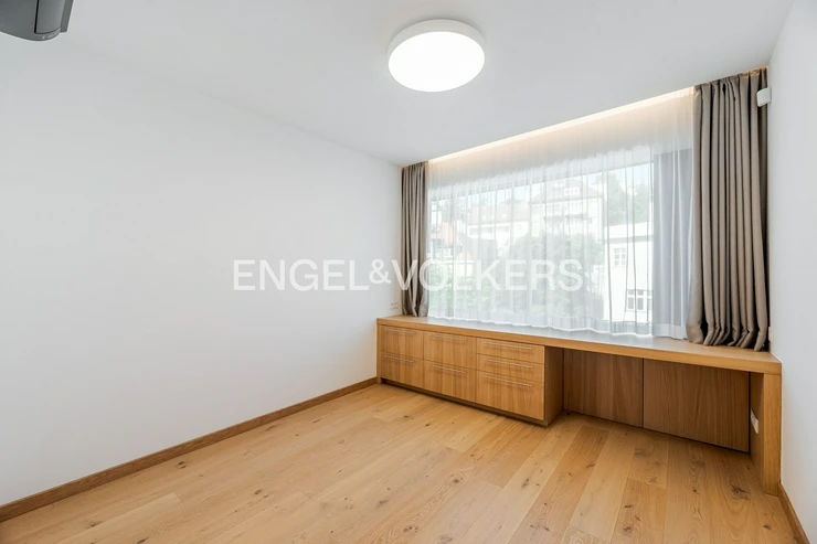 The apartment, with a size of 137 sqm, is located on the third floor of a newly built residence awarded the prestigious CE ZA AR 2023 architectural prize. It is a place where you can truly enjoy everyday life – whether you are a family, a couple, or need ample space for working from home.