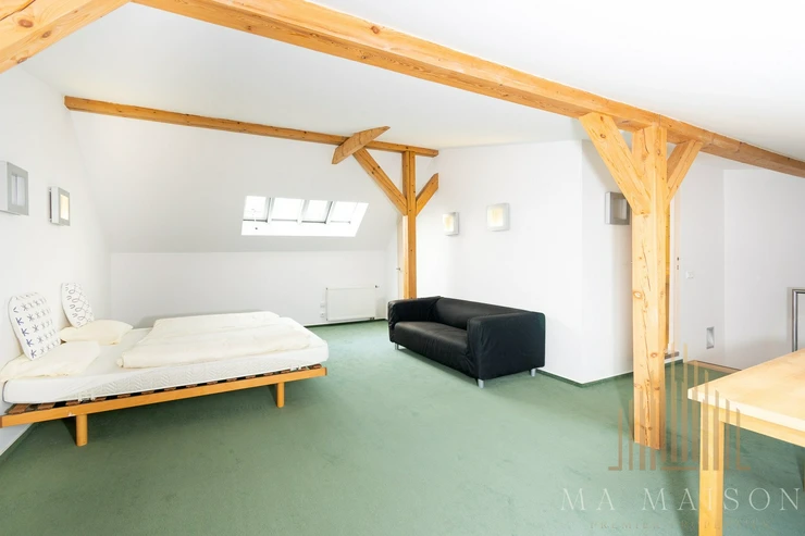 We would like to offer you a 103m² 2+kk maisonette apartment for rent at the address Pod Vilami in Prague's Nuslí. The apartment is located on the top floor of an older apartment building. The apartment is in excellent condition, after reconstruction.