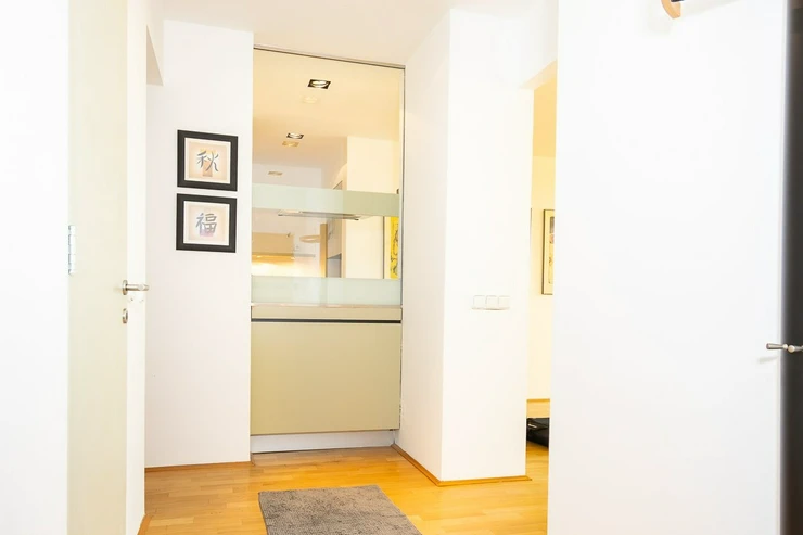 The layout of the apartment is divided into two floors, while the ground floor of the apartment has an entrance hall, a toilet, a storage room, a living room and a kitchen. On the upper floor, there is a bedroom, a bathroom and a spacious dressing room. The apartment is furnished with basic furniture, which can be seen in the photos in the ad. Of course, it is possible to take the furniture out of the apartment by mutual agreement.