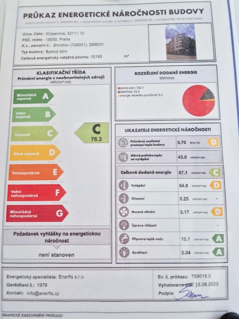 The energy performance level of the building was classified according to Order 264/2020 Coll. as “C”.
