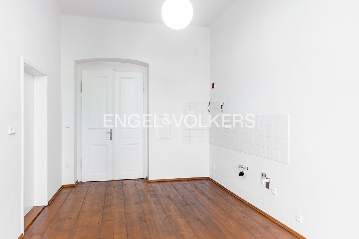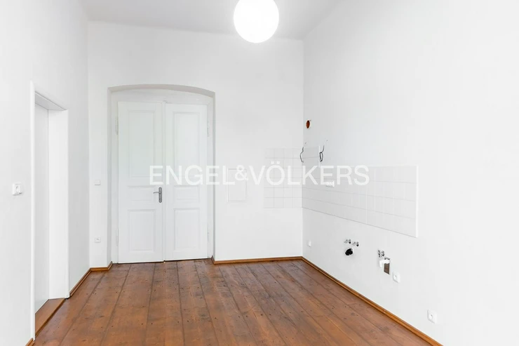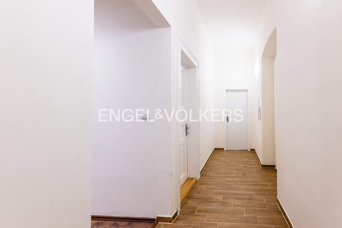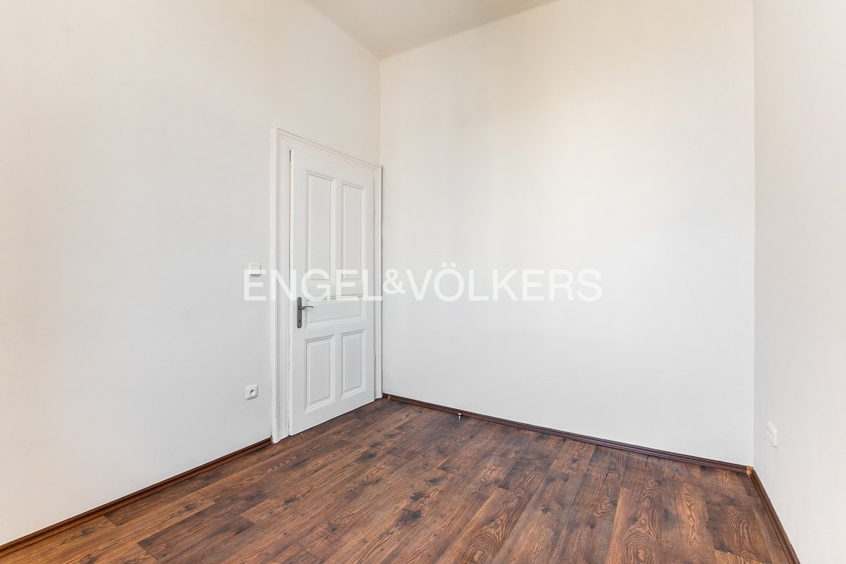 From this room, there is an entrance to the last room (22.3 m²). Furthermore, there are two separate storage areas in the hallway (2.67 and 1.61 m²). The floors in the apartment are a combination of wood, vinyl, and tile. The largest room has wooden casement windows facing the street; the other rooms have wooden double-pane windows overlooking the courtyard. The building is located in close proximity to public transportation.