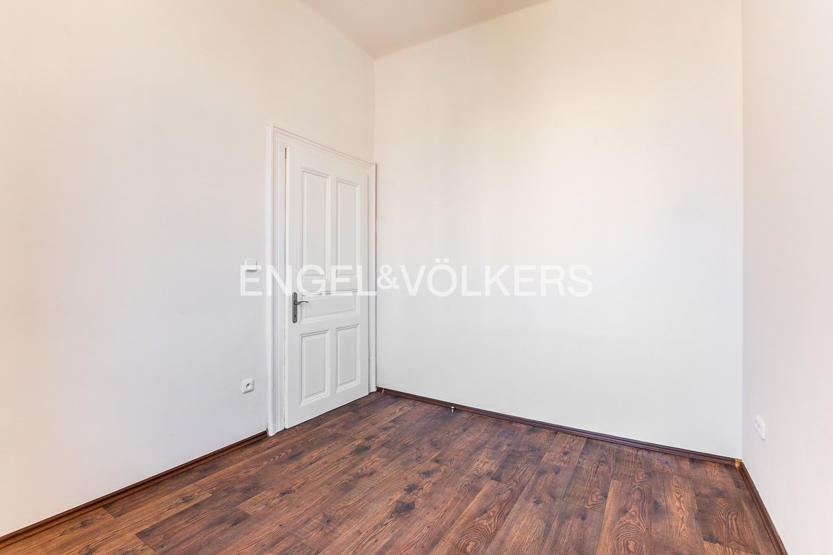 The apartment features two walk-in closets (2.67 and 1.61 m²). The floors in the apartment are a combination of wood and vinyl. The largest room has wooden casement windows facing the street; the other rooms have wooden double-pane windows overlooking the courtyard. The building is located in close proximity to public transportation.