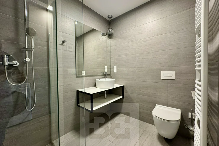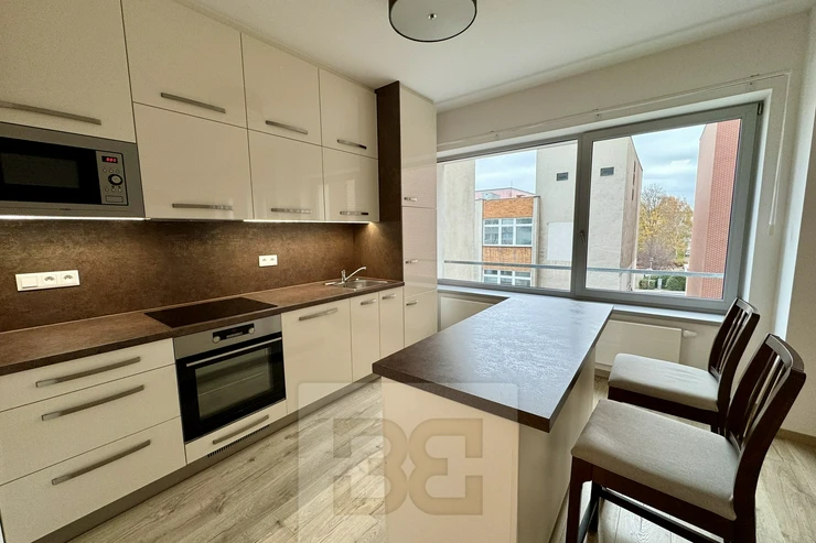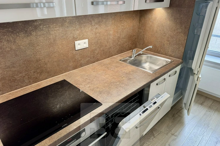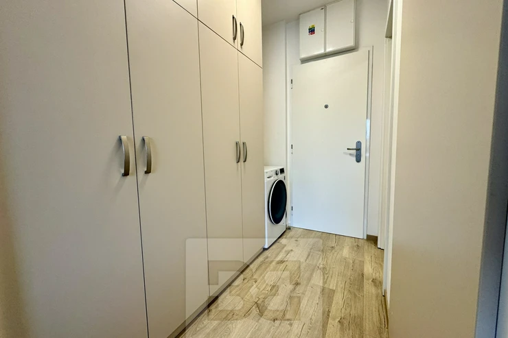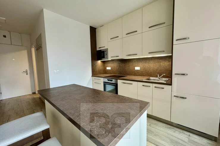 This modern and bright studio apartment in a new building with its own cellar and garage parking space in a quiet location in Zlín on Lorencova Street is a great choice for discerning tenants. The apartment is located on the 3rd floor of a brick building and offers a spacious room connected to a fully equipped kitchen with an island and additional storage space. The hallway has built-in custom wardrobes and a washer-dryer combo. The bathroom is equipped with a modern shower and toilet. The apartment is ready for occupancy from 1.6.2026. Parking is included in the rent. The rent is CZK 14,500 plus advance payments of around CZK 4,000. Deposit and commission equal to one month's rent. This apartment is a great investment in comfortable and modern living in a quiet environment with all the necessary amenities within reach.