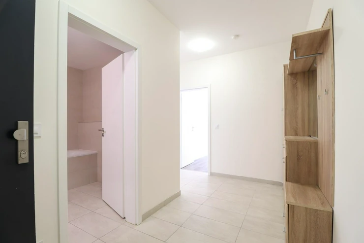 Byt se skládá z krásného světlého obývacího pokoje s kuchyňskou linkou (lednice s mrazákem, mikrovlnka, trouba, digestoř). Dále je neprůchozí ložnice, vstup na terasu je z obou pokojů. V koupelně je vana, umyvadlo a toaleta. Také v bytě je pračka.