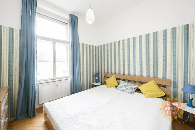 We offer for rent a furnished sunny 2+kk apartment, situated to the southeast. The apartment with an area of 54 sqm is located on the fourth above floor of a historical Art Nouveau building with an elevator after a complete reconstruction, in a popular location by the embankment near Anděl, in a quiet part of Prague 5, V Lesíčku street in close proximity to Malá Strana between Janáček embankment and Petřínské sady.