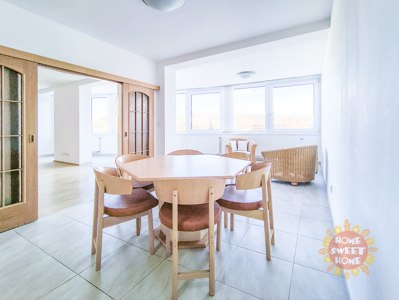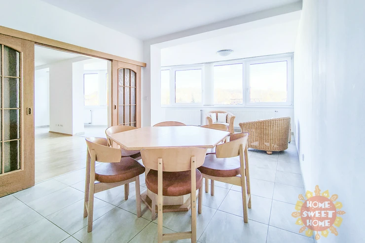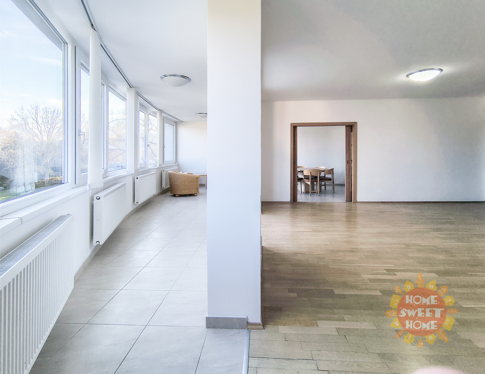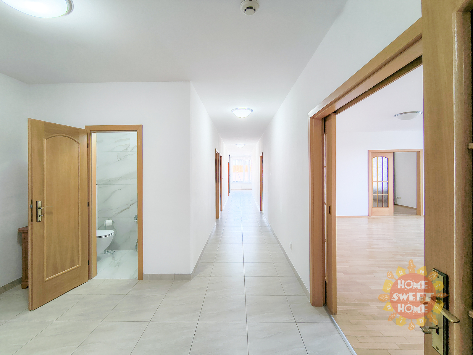 The apartment layout is very practical, offering four separate rooms and a generous living area with a kitchenette. The bathroom and two separate toilets have just undergone a complete renovation in a modern design and are brand new. Thanks to its size, the entire interior feels very airy and comfortable. The apartment is an ideal choice for family living, demanding clients looking for privacy, or it can be used as representative office space, or a combination of both.