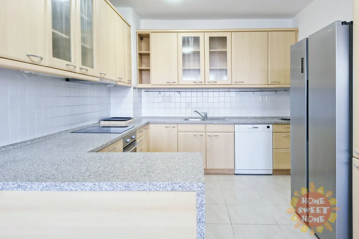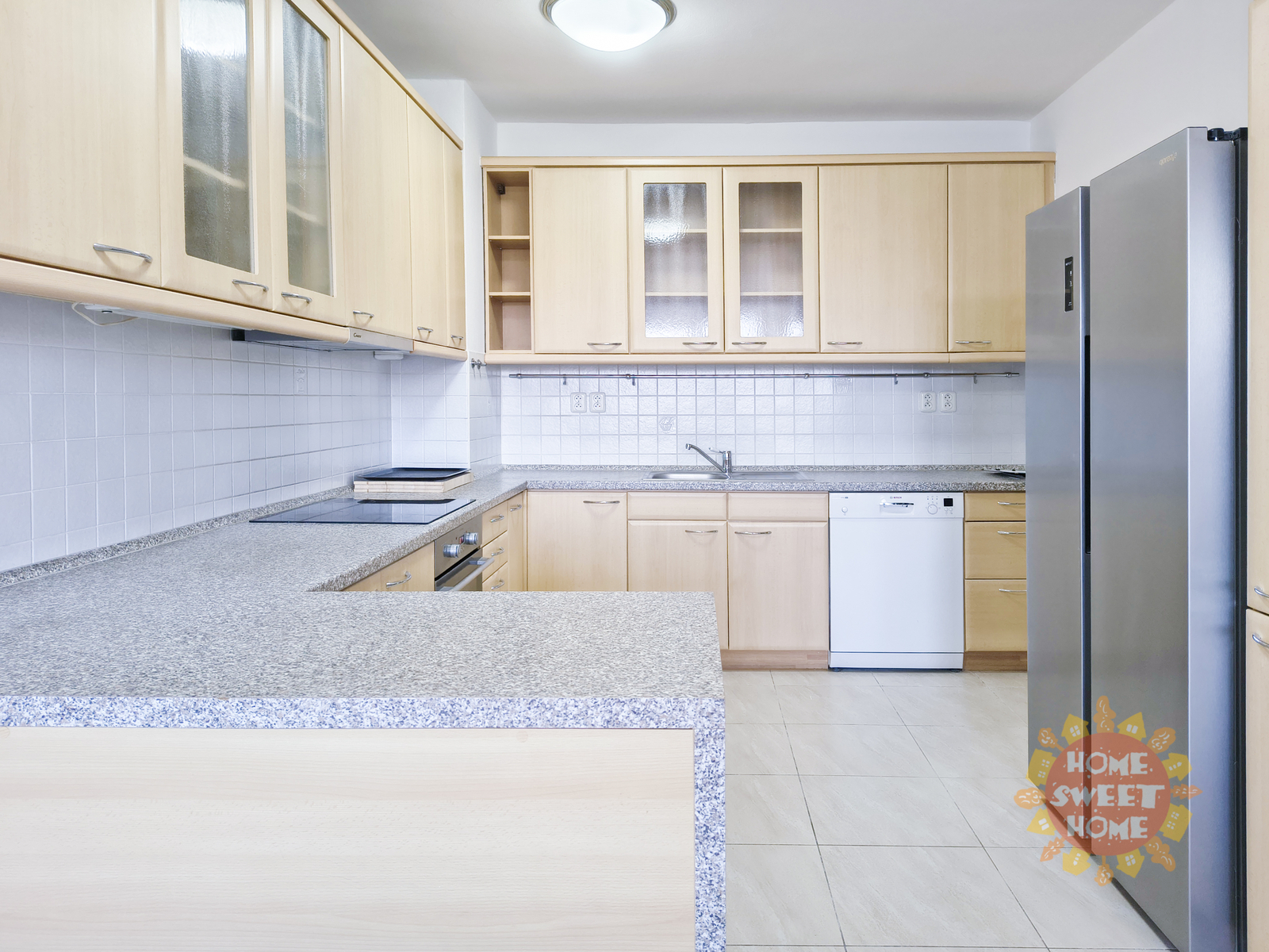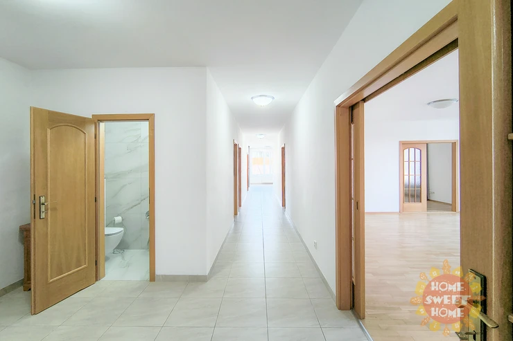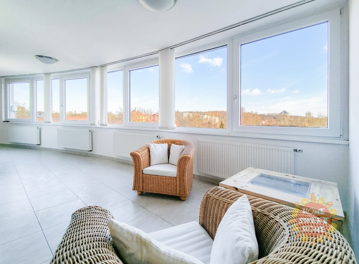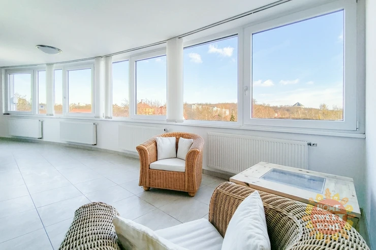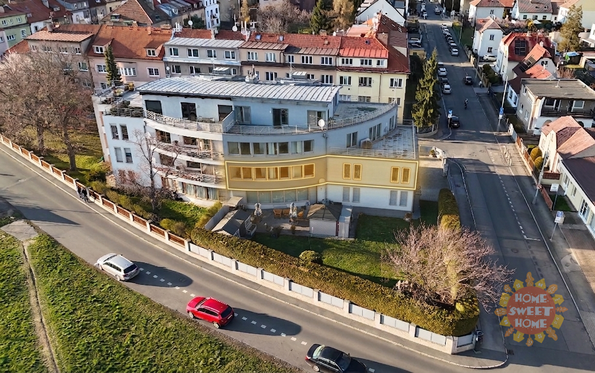 The apartment layout is very practical, offering four separate rooms and a generous living area with a kitchenette. The bathroom and two separate toilets have just undergone a complete renovation in a modern design and are brand new. Thanks to its size, the entire interior feels very airy and comfortable. The apartment is an ideal choice for family living, demanding clients looking for privacy, or it can be used as representative office space, or a combination of both.