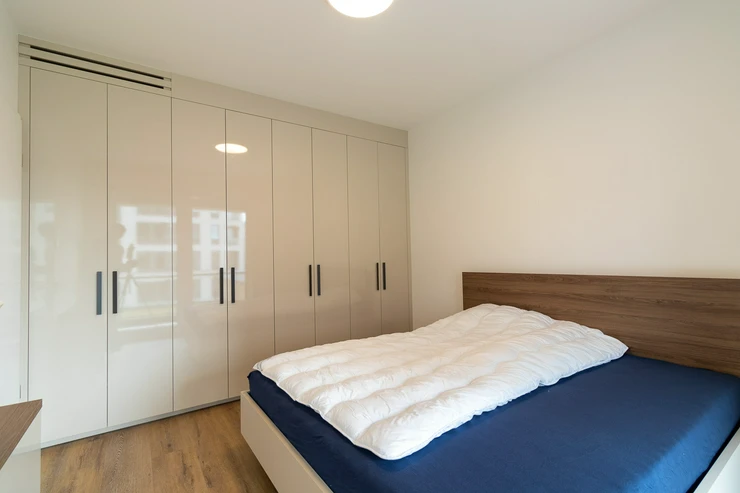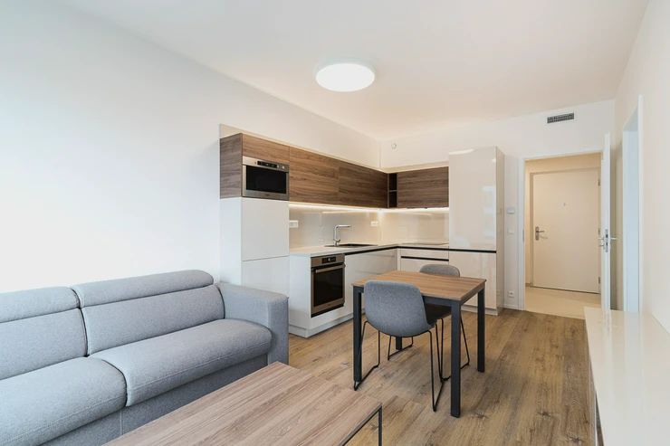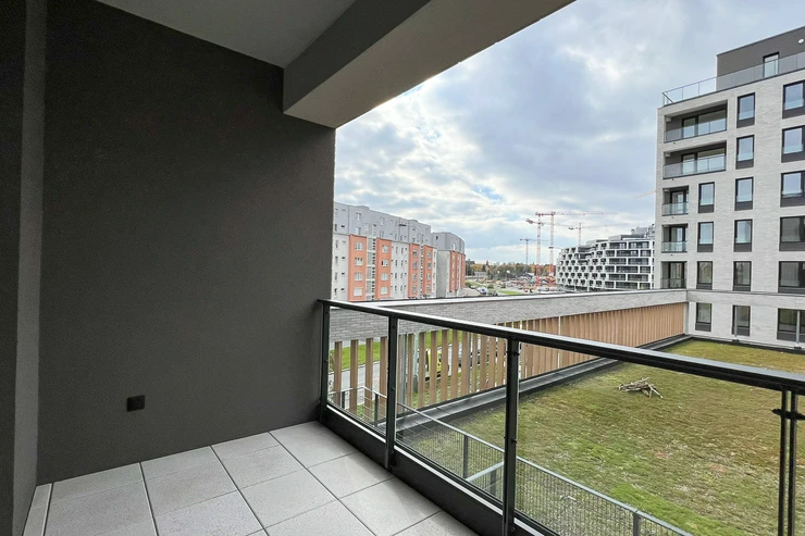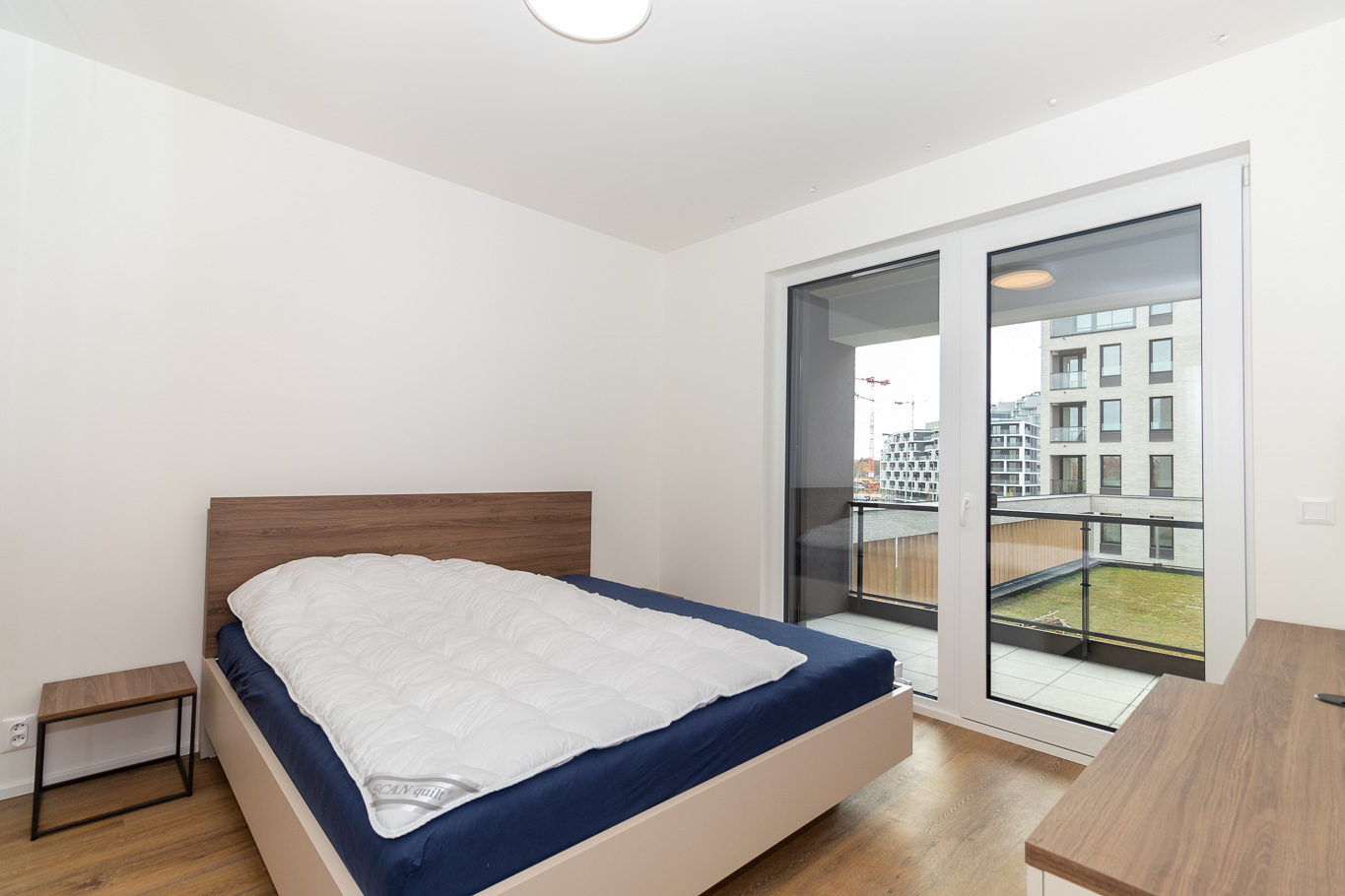 A newly furnished and equipped 2+kk apartment located on the 3rd floor of a new building from 2022 on the border of Vinohrady and Strašnice, approximately 8 minutes from the Želivského metro station. The Green Port Strašnice project is located at the intersection of Počernická and Na palouku streets.