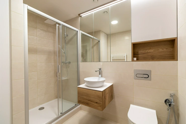 Ceramics by Roca weekend, sanitary ware and batteries by Ravak, glued vinyl floors in the living room and bedroom, white lacquered doors.