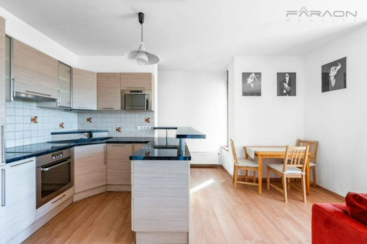 The apartment is equipped, kitchen with electrical appliances, electric and microwave oven, ceramic hob, fridge with freezer, dishwasher, dining table, chairs, sofa. The large bedroom has a double bed, plenty of storage space (large wardrobes), an entrance hall with plenty of wardrobe storage space, tiled floors, a bathroom withbathtub, floating floor in wood decor.