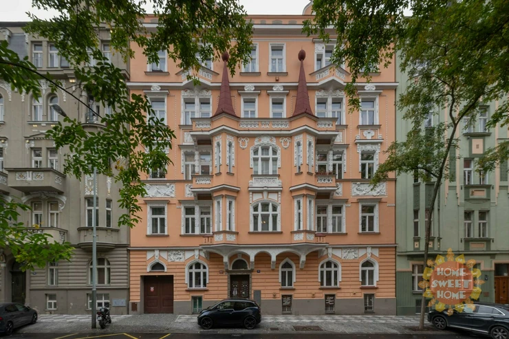 We would like to introduce you to living in the very heart of Královské Vinohrady, Mánesova Street, just a few steps from Náměstí Jiřího z Poděbrady. The art nouveau house with elevator and all apartments were completely renovated in 2019.