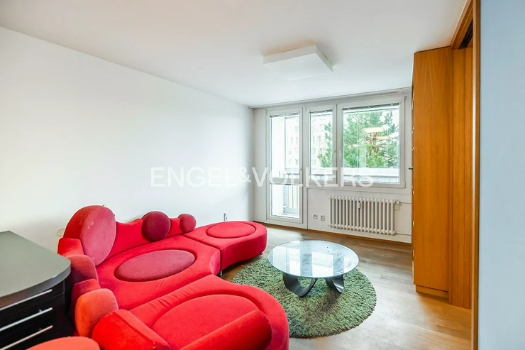 A furnished cooperative 2+kt apartment with an area of 48.72 sqm is available for immediate and long-term rent. It is located on the 4th floor of a residential building with an elevator in Šimonova Street, Řepy.