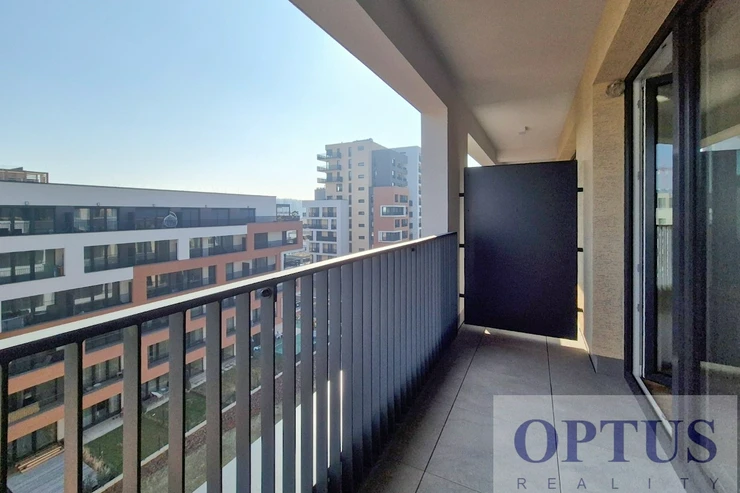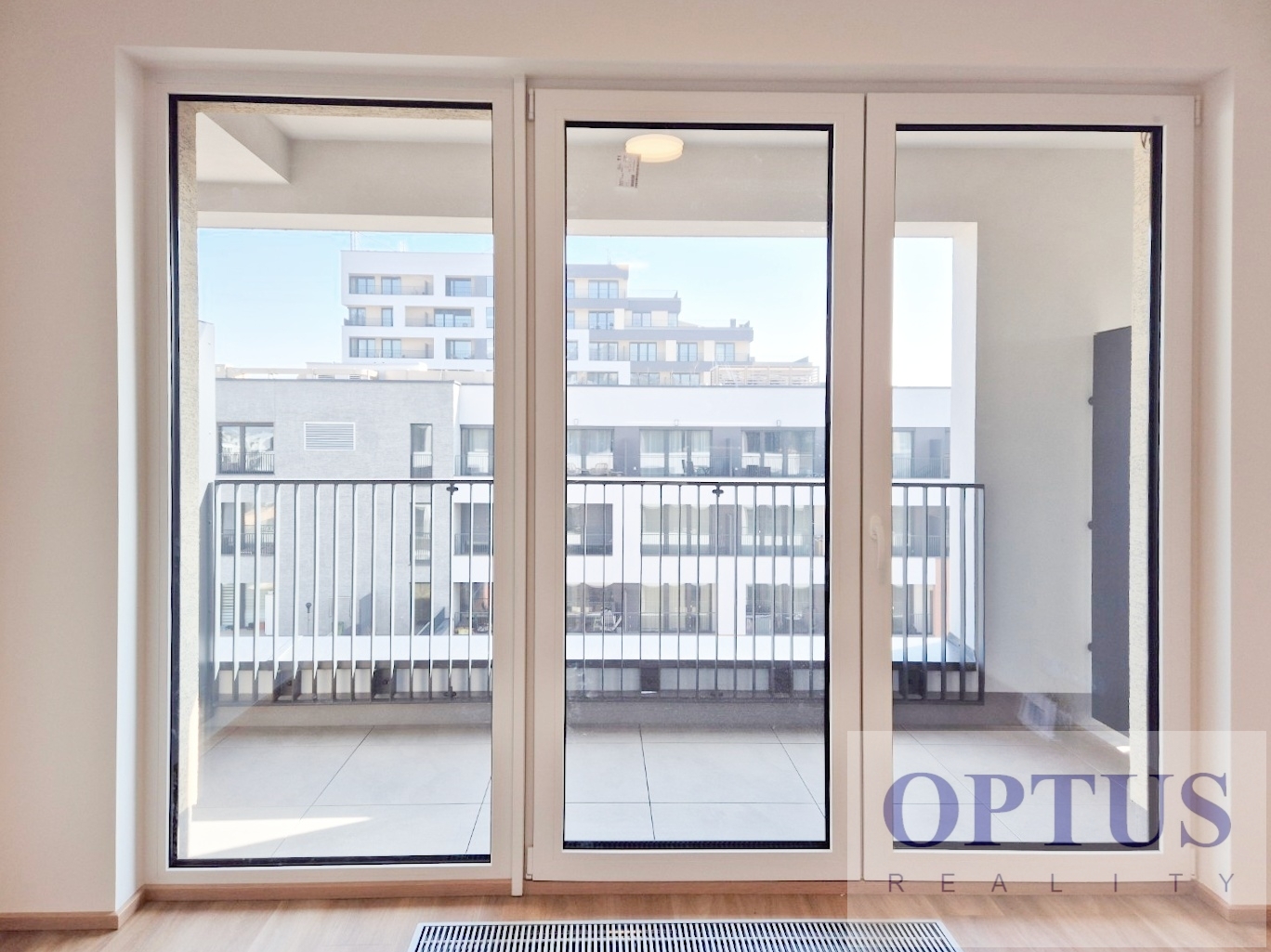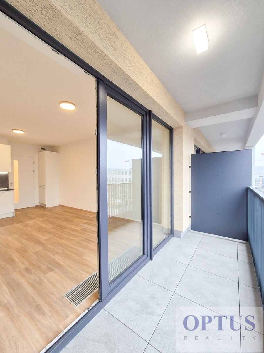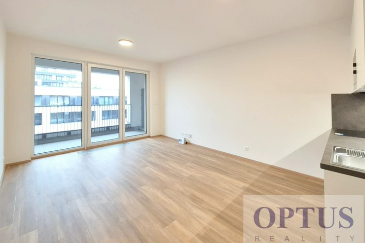 We offer for rent a new luxury unfurnished apartment 1 + kitchenette (with a floor area of 32.2 m2) + balcony 5.4 m2, facing east and situated on the 5th floor of a newly completed residential building with an elevator in the Tesla Hloubětín residential project.