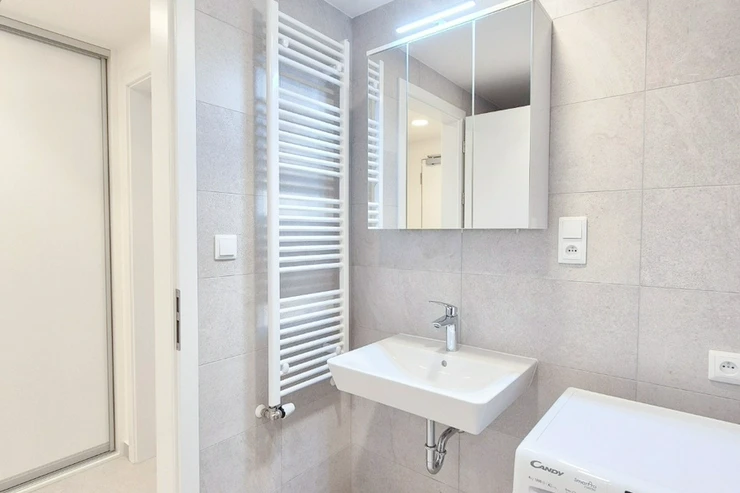 Other apartment amenities: new fitted kitchen unit including built-in appliances (induction cooking hob, electric oven, microwave, dishwasher, and refrigerator with freezer), also washing machine, built-in wardrobe in the hallway, cabling for high-speed internet - optical cable with speeds up to 2 Gb/s, wooden floors, central heating, and heat recovery ventilation.