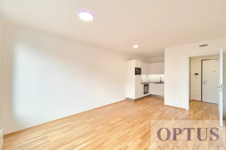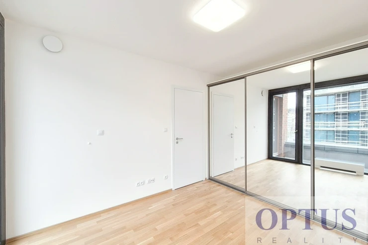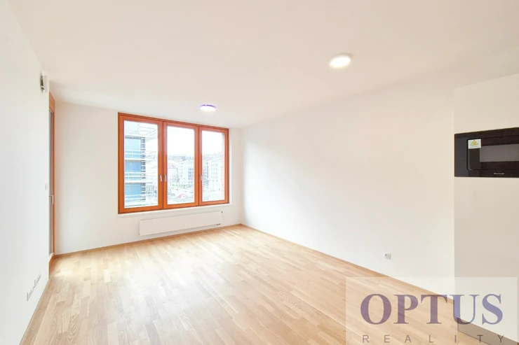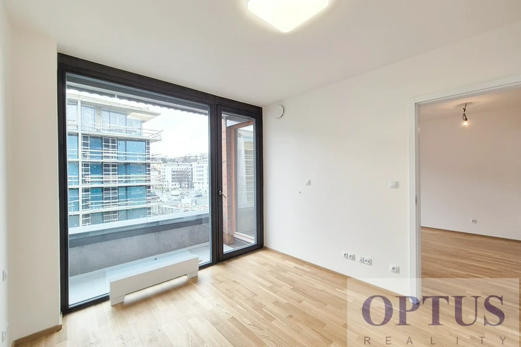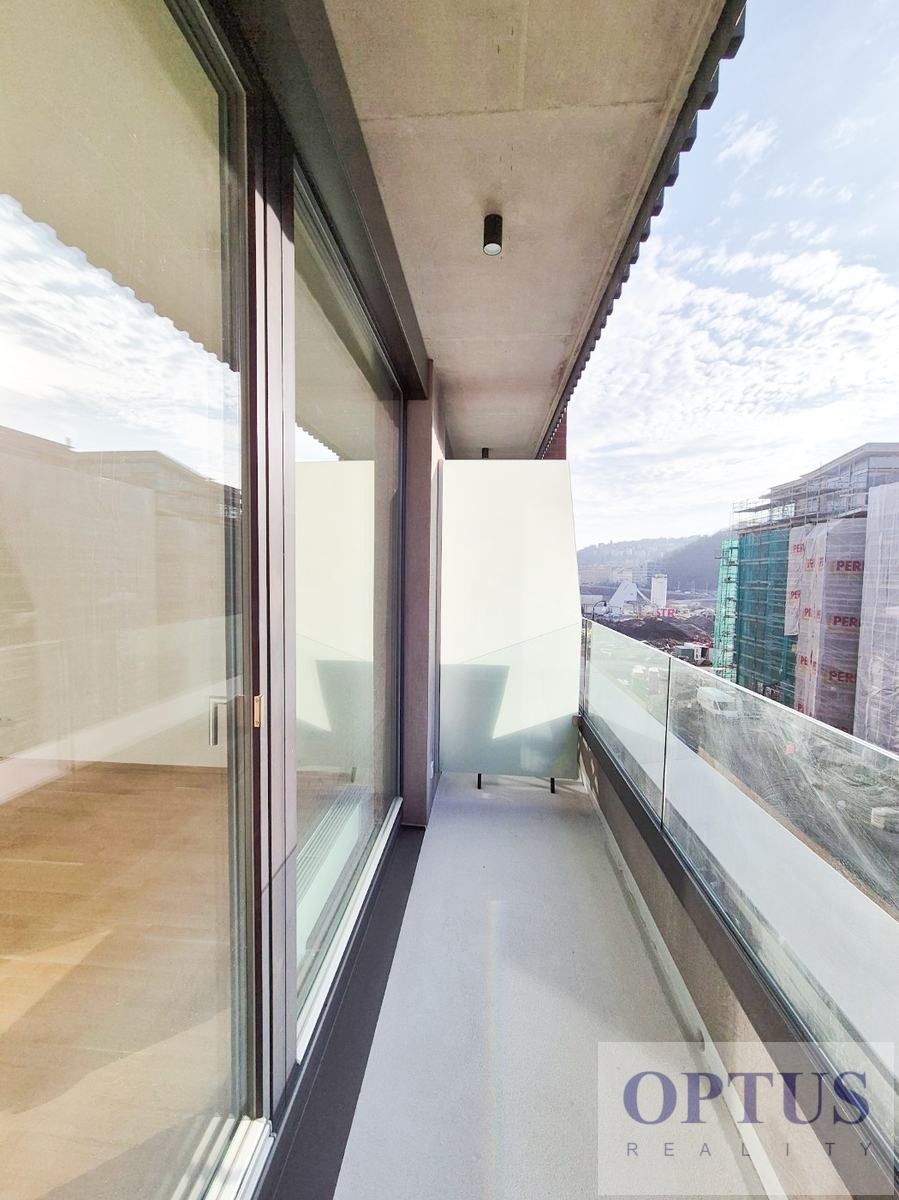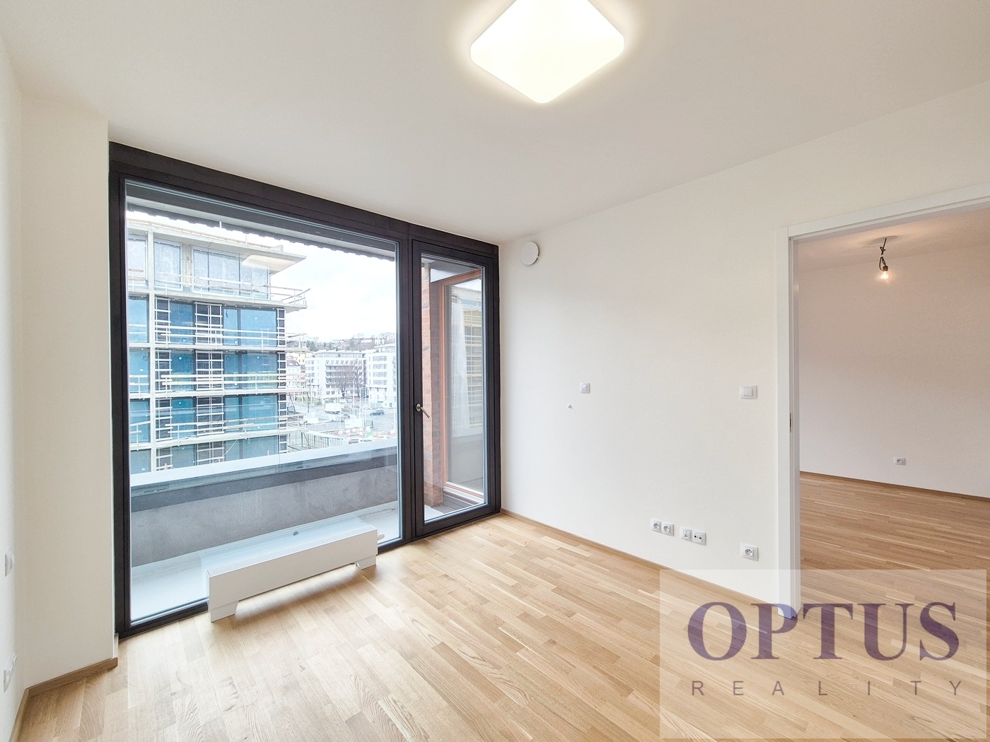 Brand new high-quality unfurnished apartment size 2 + kitchen corner (in area of 44.2 m2) + balcony of 3.4 m2 - west orientation; situated on the 5th floor with lift in a new residential complex Smíchov City. The apartment consists of an open space living room of 22 m2 with a fully fitted kitchen and access to the balcony, one bedroom of 12.1 m2, one full bathroom (with a shower corner and a toilet), and an entrance hallway.