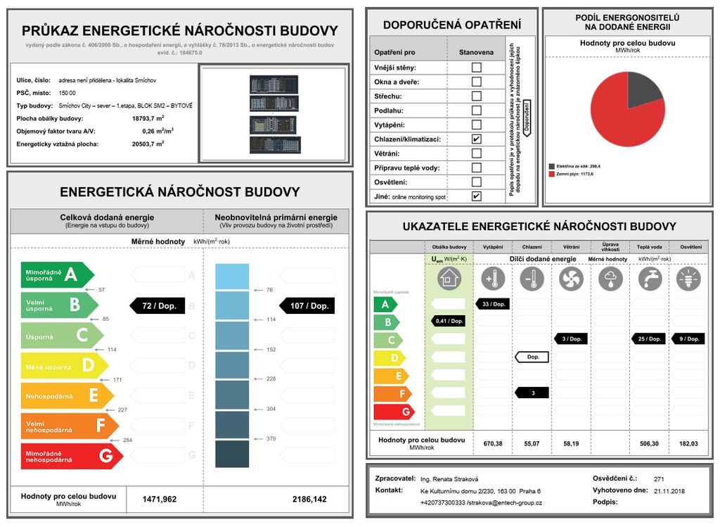 The energy performance level of the building was classified according to Order 78/2013 Coll. as “B”.