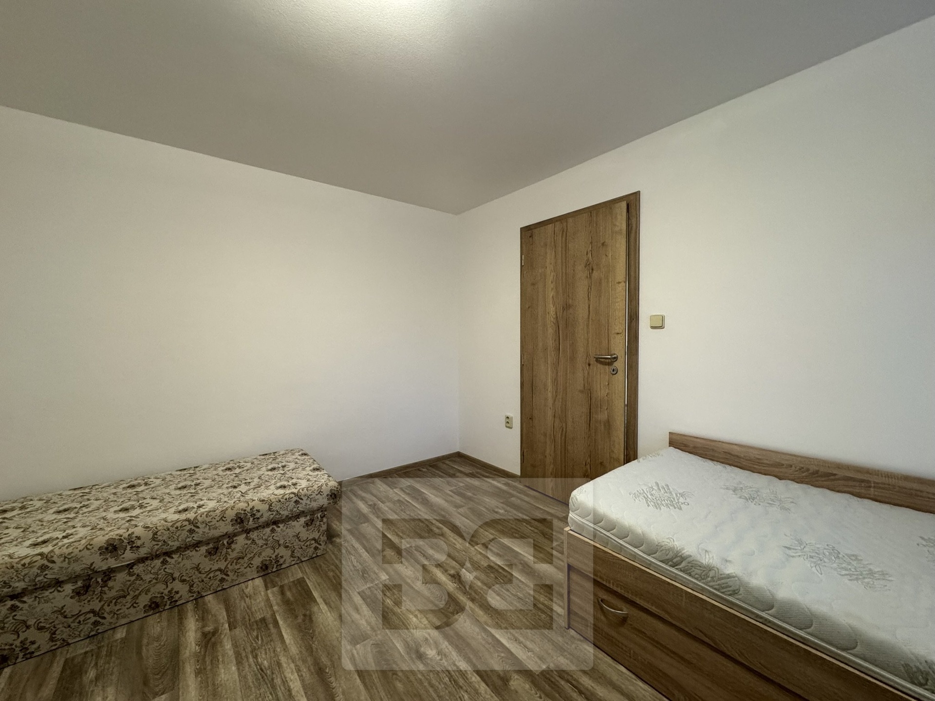 The layout includes a spacious entrance hall with plenty of storage space, a separate toilet, a bathroom with a bathtub, and a fully equipped kitchen including all appliances, such as a dishwasher. The living room is spacious and fully furnished. The bedroom is currently arranged for two individuals, but the furniture setup can be adjusted according to the tenant’s needs.