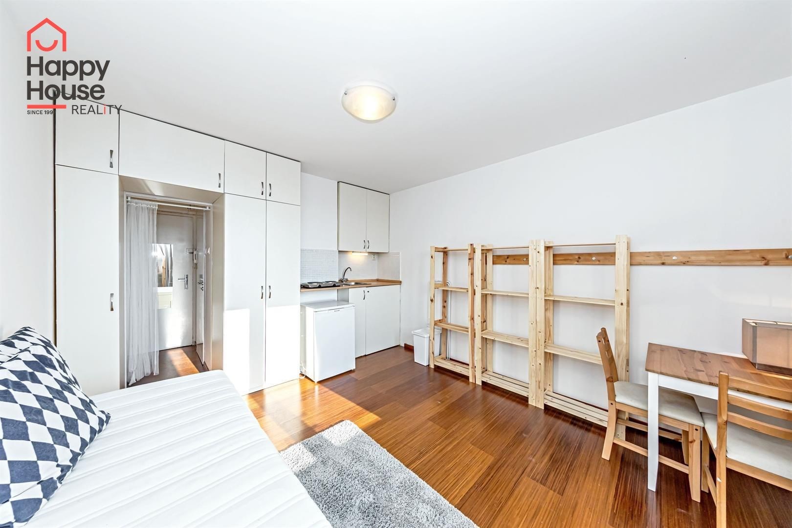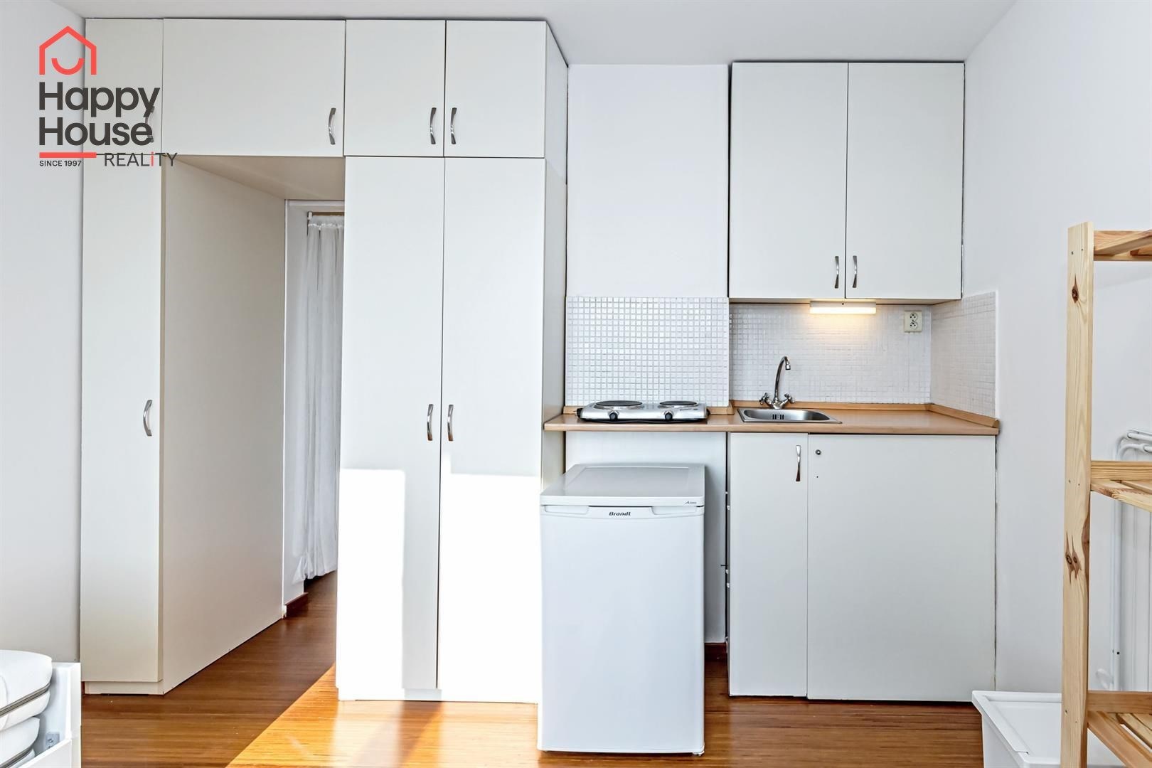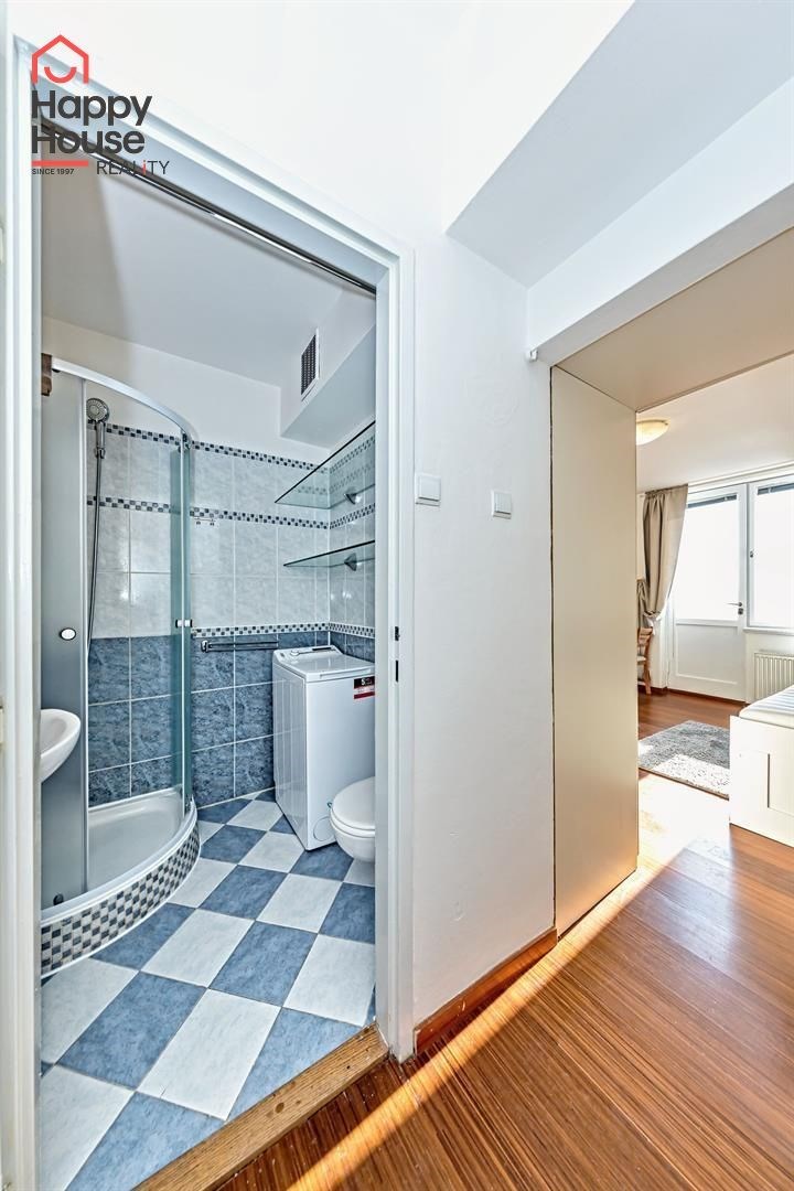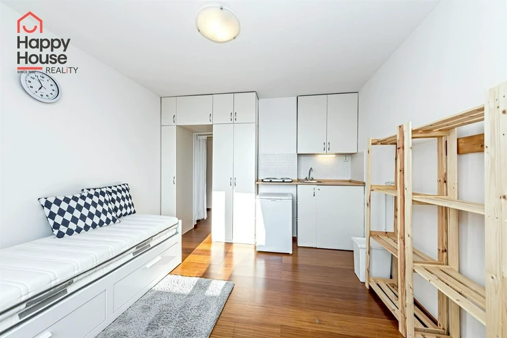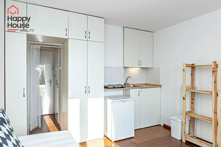 We offer for long-term rental a bright and cozy studio apartment of 25 m2 with a pleasant balcony and a beautiful view of Prague. The apartment is located on the 5th floor of a brick building, completely renovated last year (including all installations), in the sought-after area of Prague 7 – between Strossmayer Square and Vltavská public transport station.