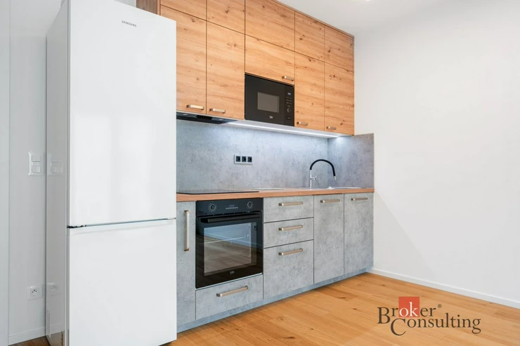 Nabízíme k pronájmu moderní byt 1+kk o velikosti 36 m², umístěný v 6. nadzemním podlaží nového rezidenčního komplexu Pekárenský dvůr.