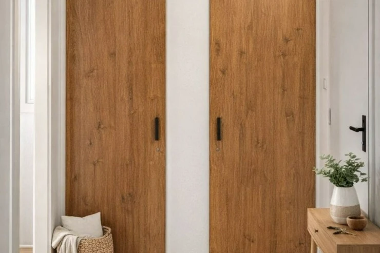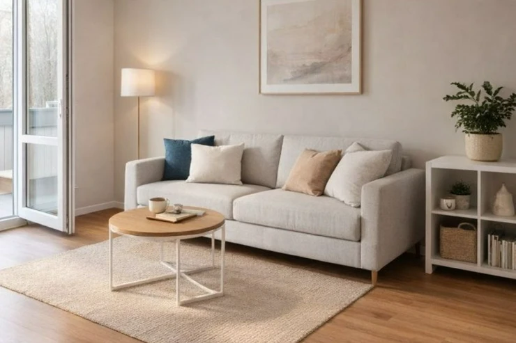 Dispozice bytu zahrnuje obytný pokoj s kuchyňským koutem, koupelnu, částečně oddělené WC a vstupní chodbu. K bytu dále náleží komoda umístěná mimo byt a sklepní kóje, které poskytují další úložný prostor.