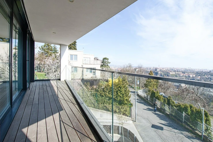 We offer for rent a modern apartment with two parking spaces in the Villa City View Residence in Prague 5 - Smíchov. This 2-bedroom apartment with a living room and kitchenette (96.5 m²) features a terrace (6 m²) with a beautiful city view. It is located on the 1st floor and offers barrier-free access both from the entrance to the residence and from the garage.