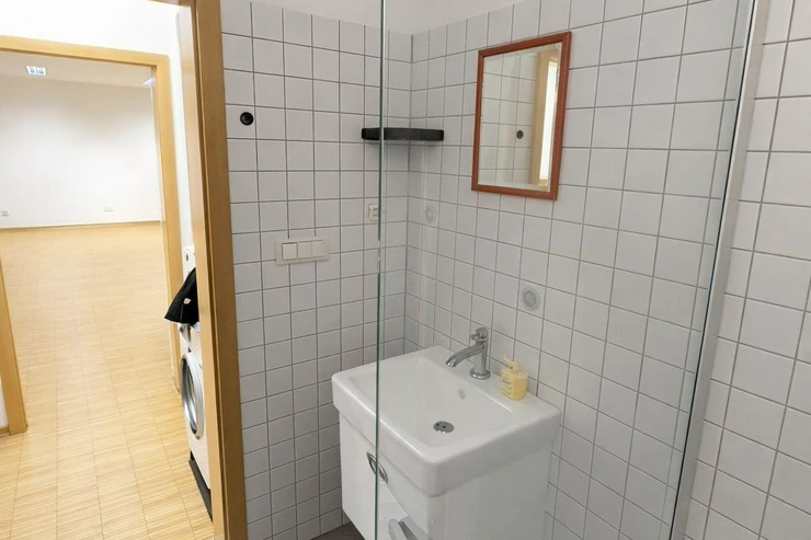 Comfortable living right next to Vítkov Hill Park, near the Vrch sv. Kříže Park. All public amenities are nearby. There are numerous cafes and shops in the vicinity. There is a very good connection to the center; the bus stop is right in front of the house or a 7-minute walk to the Křižíkova metro station B.