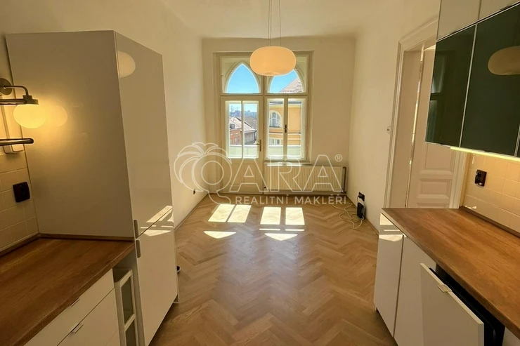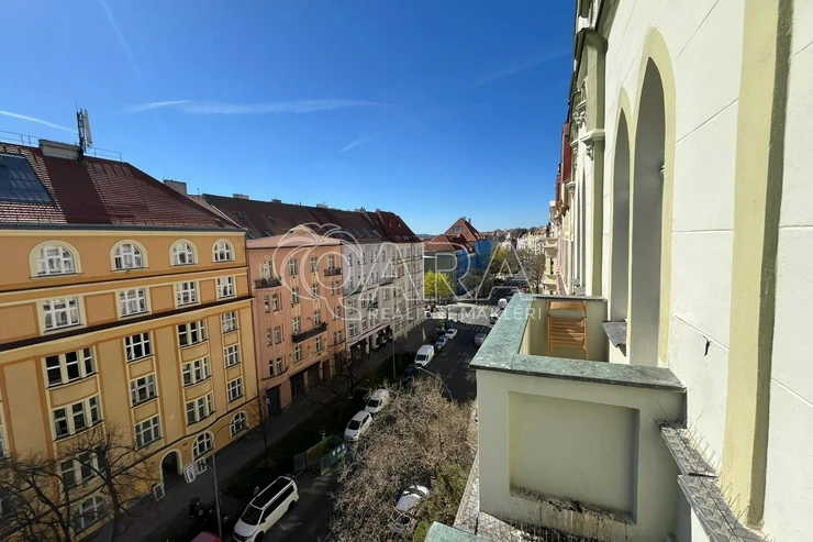 We are pleased to offer a unique 44 m² apartment located on the corner of Kodaňská and Slovinská streets. The apartment is set in a beautiful Art Nouveau building designed in the Vinohrady style, combining timeless elegance with historic charm—while technically located in Vršovice. The area provides excellent accessibility (there is a bus stop near the house that goes to the Náměstí Míru metro station in 5 minutes) and is just a short walk from parks Herold Gardens and Havlíčkovy sady.