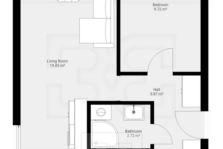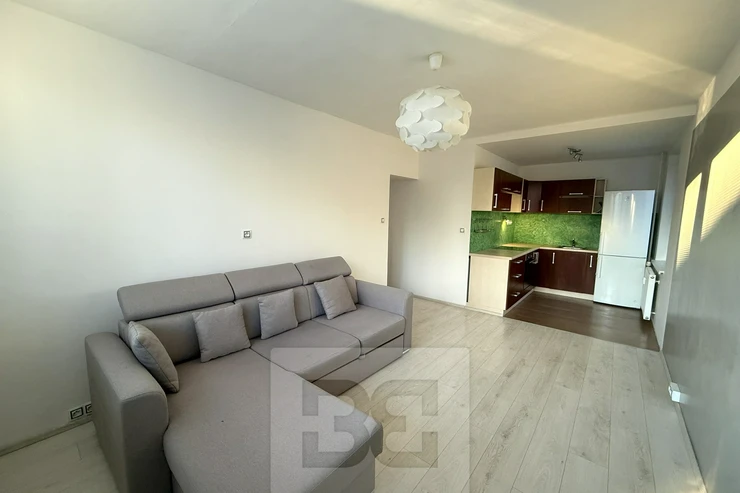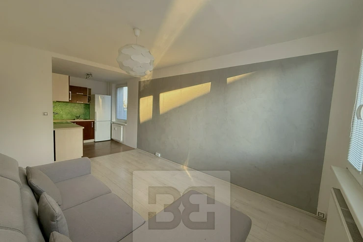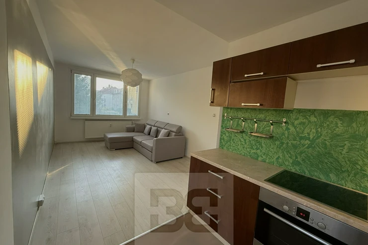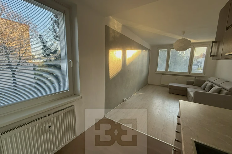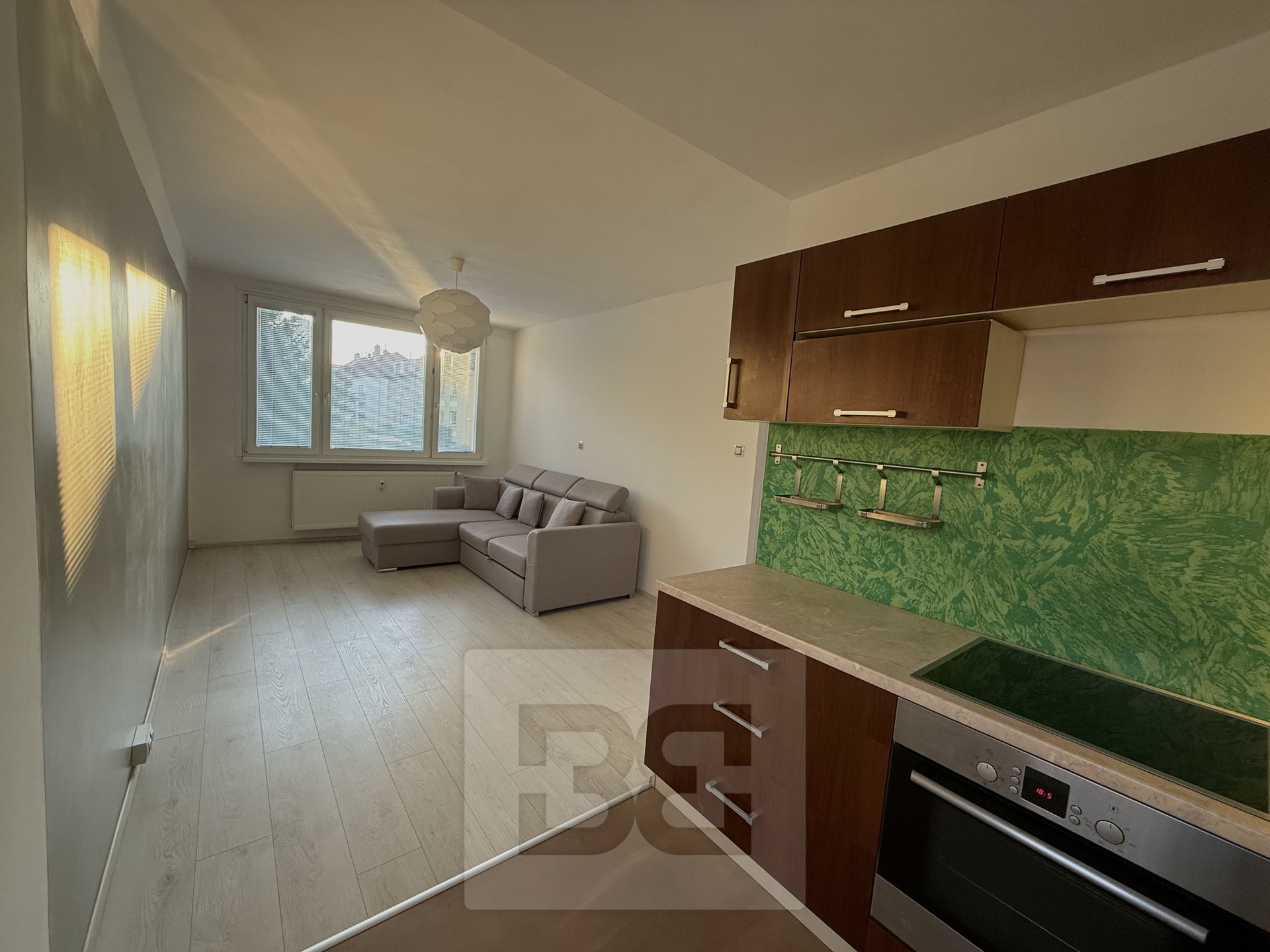 We are offering for rent a beautiful, practically designed studio apartment (2+kk) of 40 m², located in a well-maintained residential building situated on a quiet, one-way street.