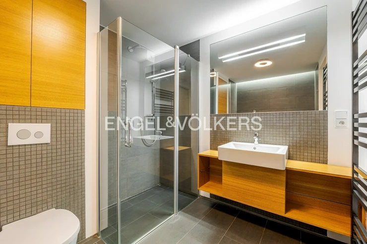 The Hradčany neighbourhood is one of the most sought-after areas of Prague, with excellent public transportation access—the Pohořelec tram stop is just a few steps from the building. Prague Castle, Hradčanské Náměstí, and the Petřín Lookout Tower are nearby.
