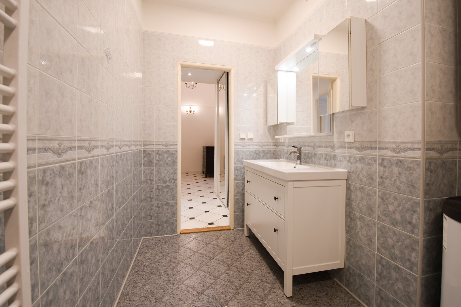 We offer for rent this bright and generously sized one-bedroom apartment (87 sqm) with a balcony, located on the 1st floor of a well-maintained building with an elevator, in one of Prague’s most popular neighborhoods - Prague 2, Vinohrady, just a one-minute walk from square náměstí Míru.