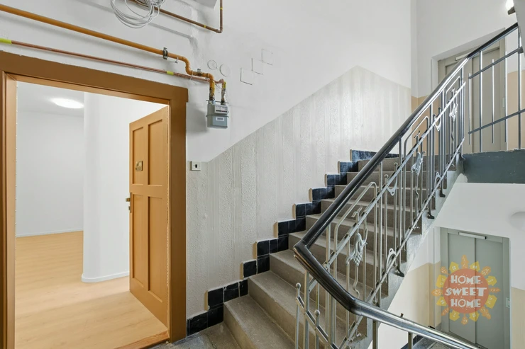 We are offering for rent a brand-new, fully renovated 50 m² 1-bedroom apartment with kitchenettea, balcony and a storage unit. This modern apartment is located on the 5th floor of a six-story brick building with an elevator on the quiet street V Háji in Prague 7 - Holešovice.