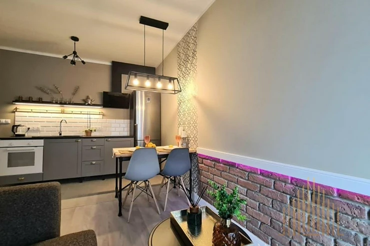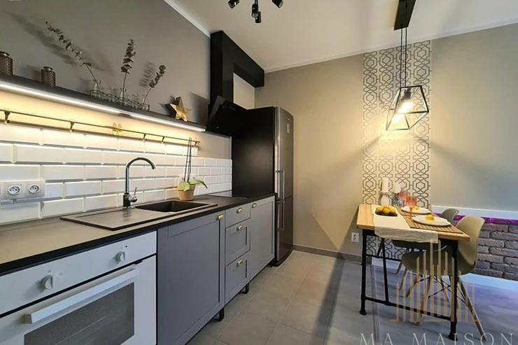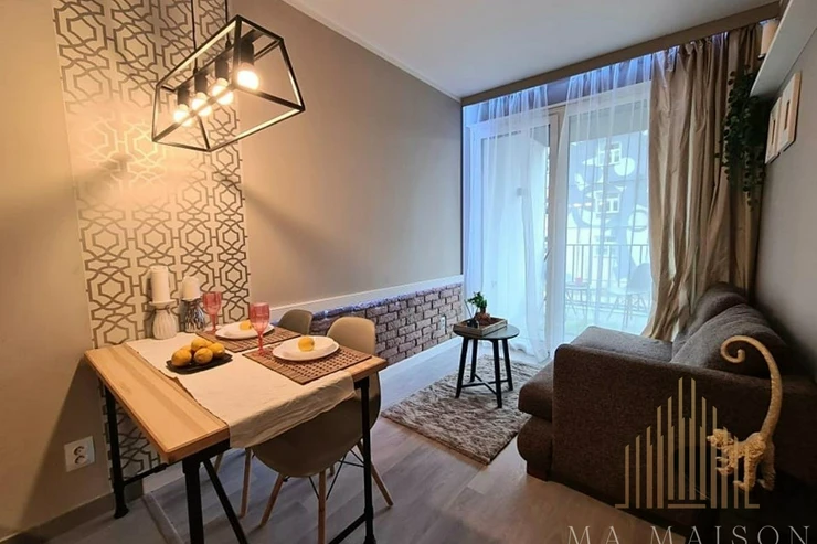 The apartment is offered as fully furnished - there is complete furniture and kitchen with appliances, which allows immediate move-in without further investment.