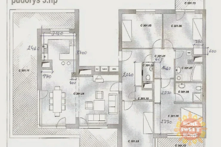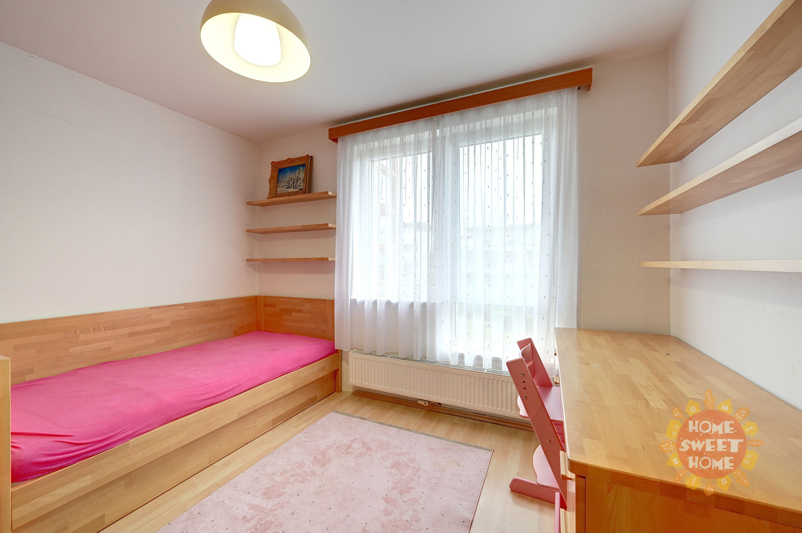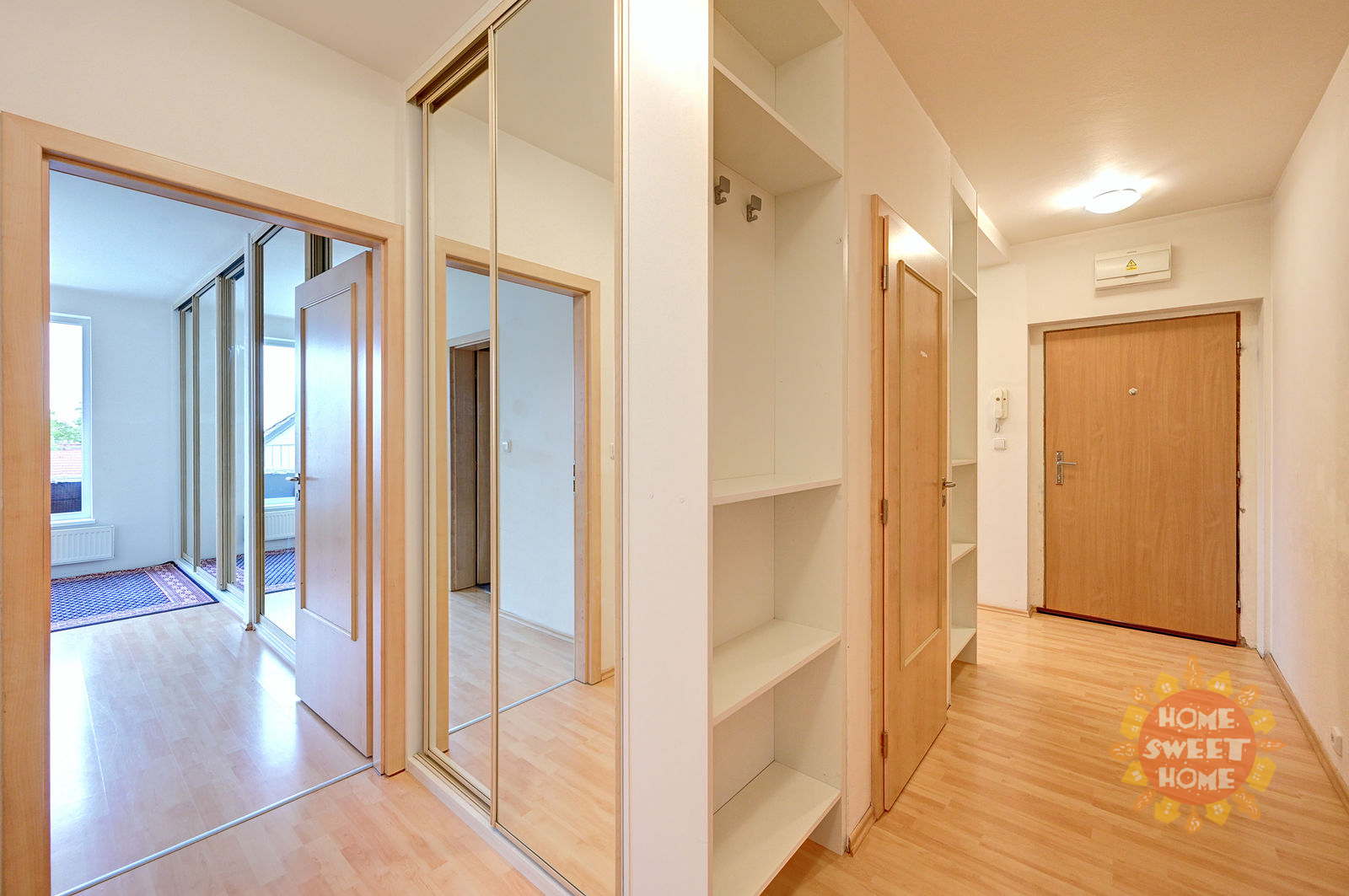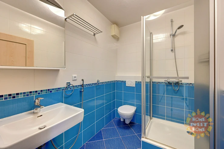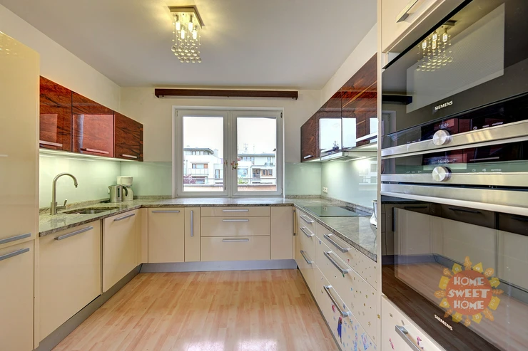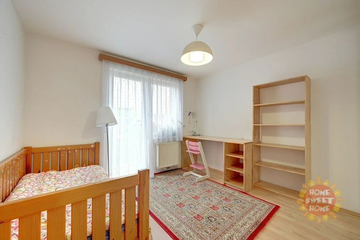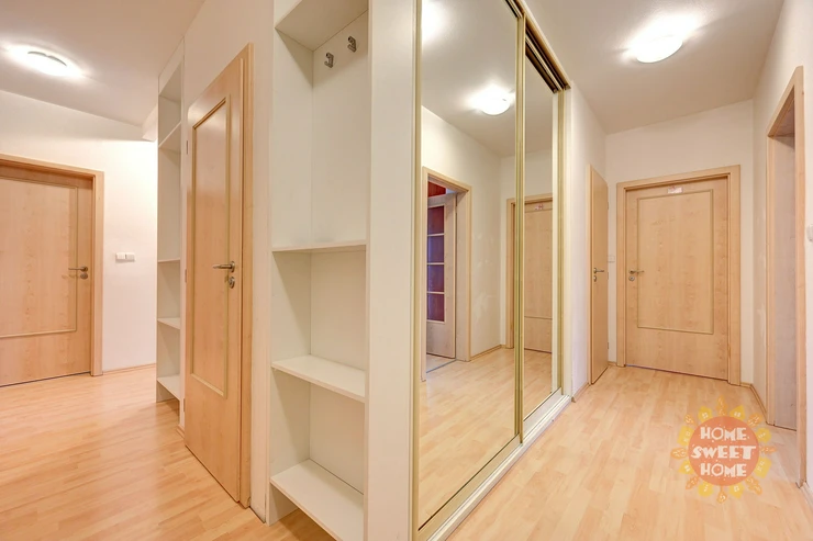 The apartment is offered for rent fully furnished as shown on the photos and will be painted white. In the hallway and in two other rooms there are spacious built-in WoodFace wardrobes, thanks to which there is no problem with storage space in the apartment. Overall, this is above-standard housing suitable for more demanding clients and families with more children. It is the only apartment on the floor, which provides its residents with maximum privacy.