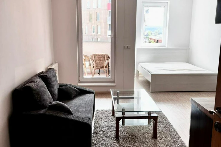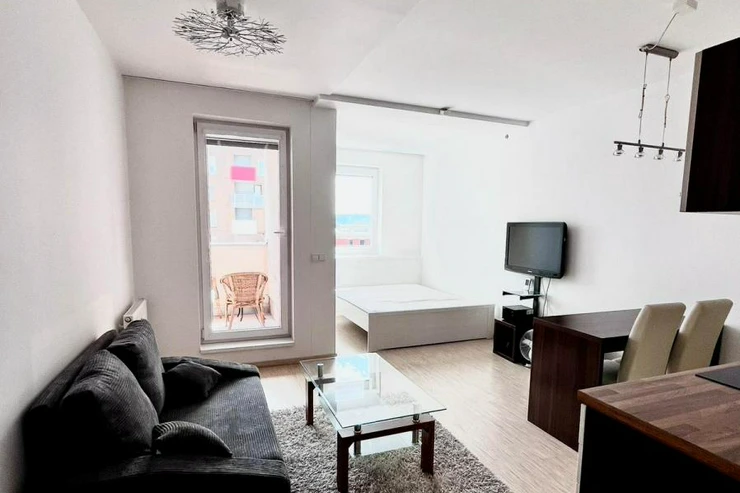 We offer for rent a bright 1+kk apartment of 35 m and sup2; + 6 m and sup2; loggia in a new building in Prague 4 Modřany, with a beautiful view of the Vltava river.