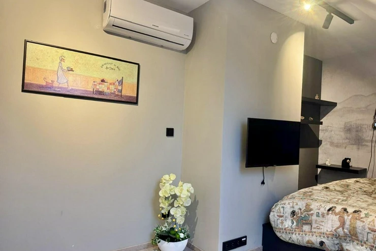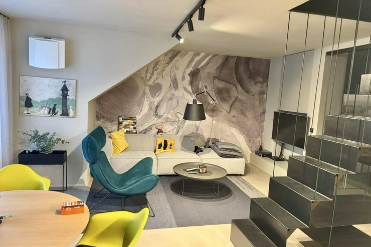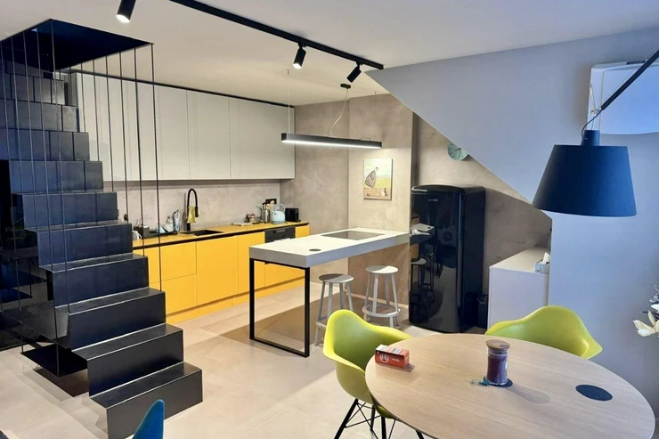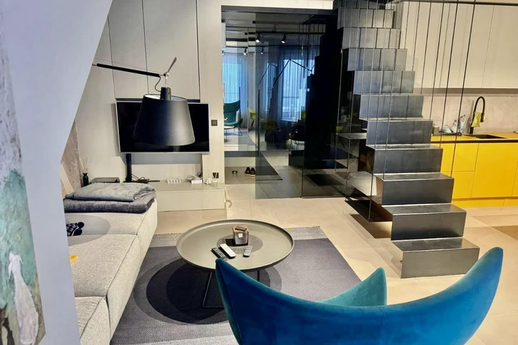 The apartment features a modern loft-style interior with attention to detail and design. It fully matches the photos and provides a cozy yet spacious living environment.