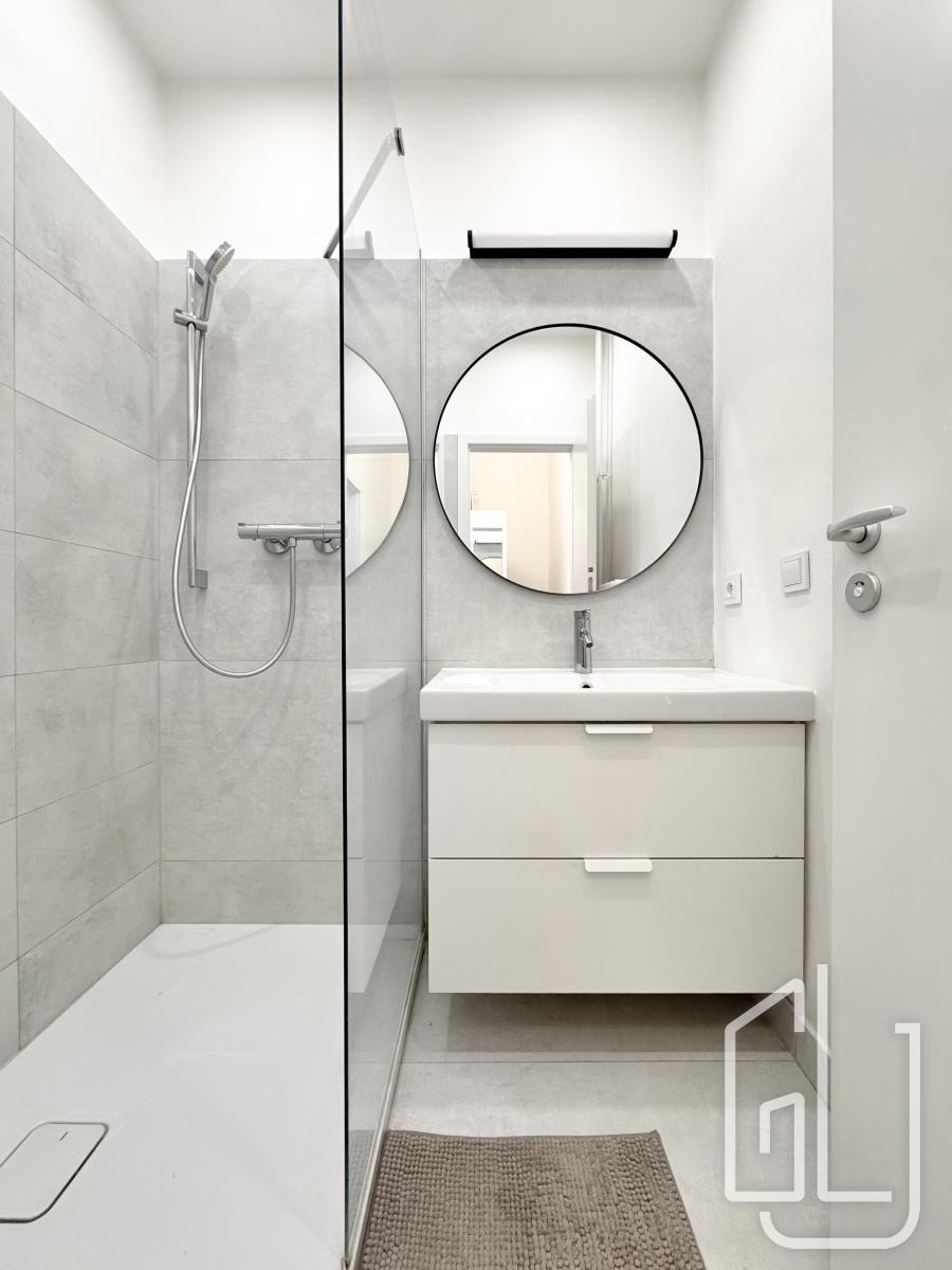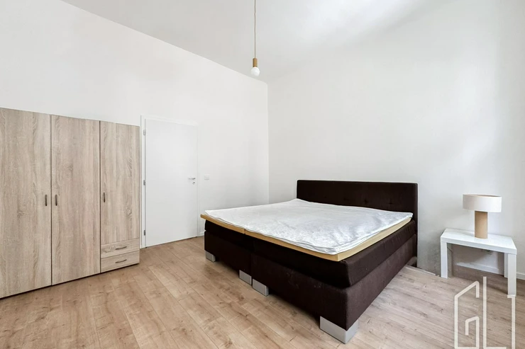 Ložnice je vybavena postelí a šatní skříní. V bytě se nachází koupelna se sprchovým koutem a pračkou. Toaleta je samostatná, což zvyšuje komfort bydlení.
