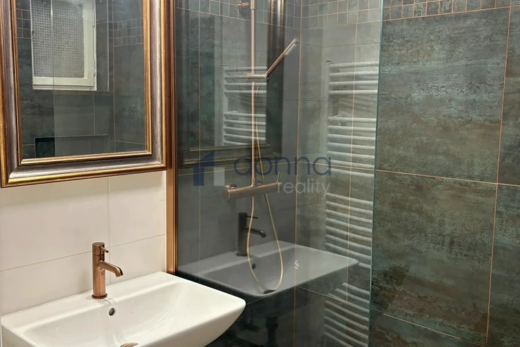 The bathroom has a shower and a combined washer and dryer, the toilet is separate. District heating. Newly renovated parquet and tiles on the floors.