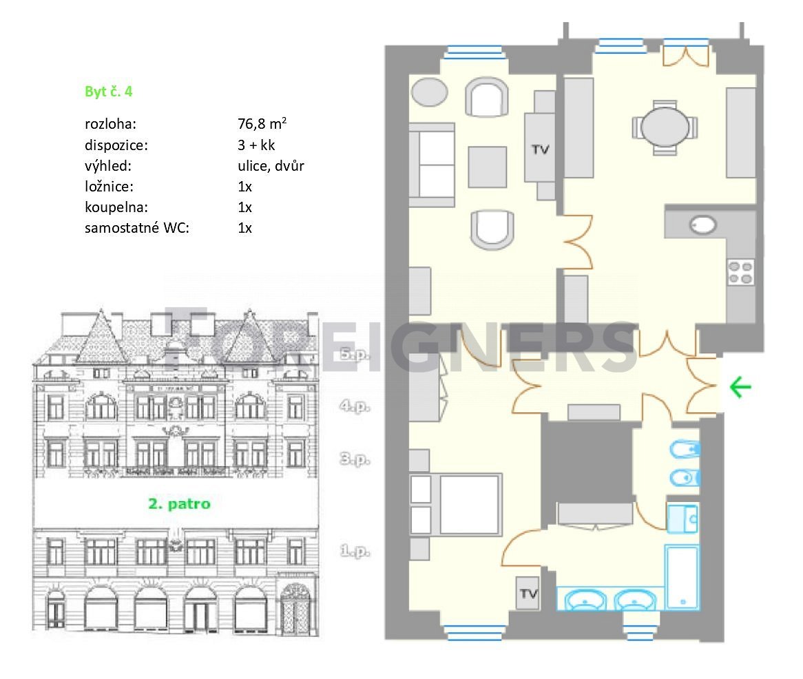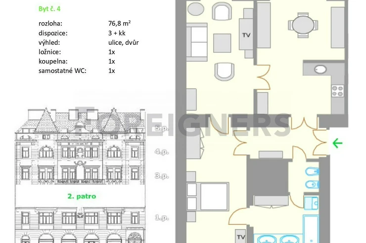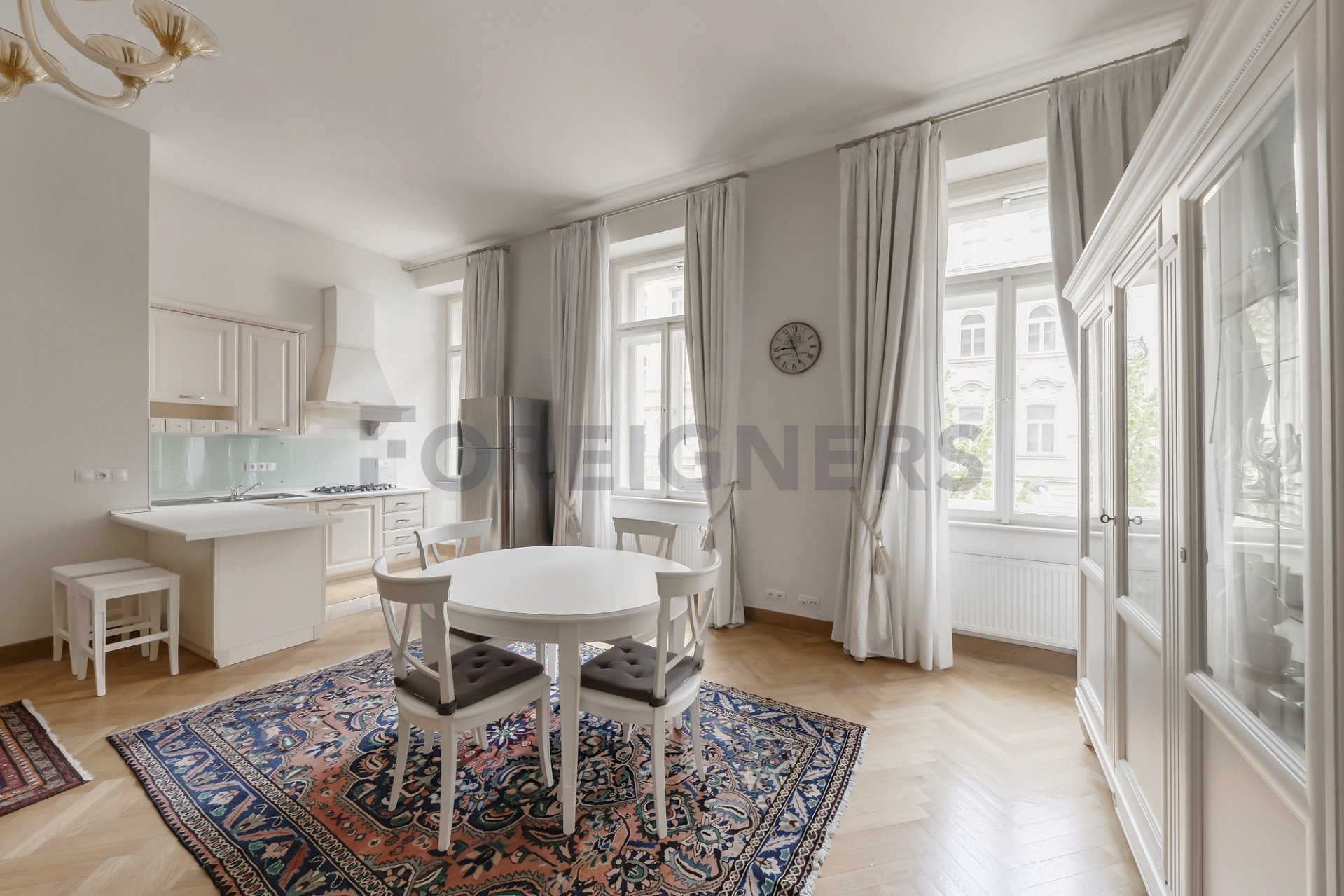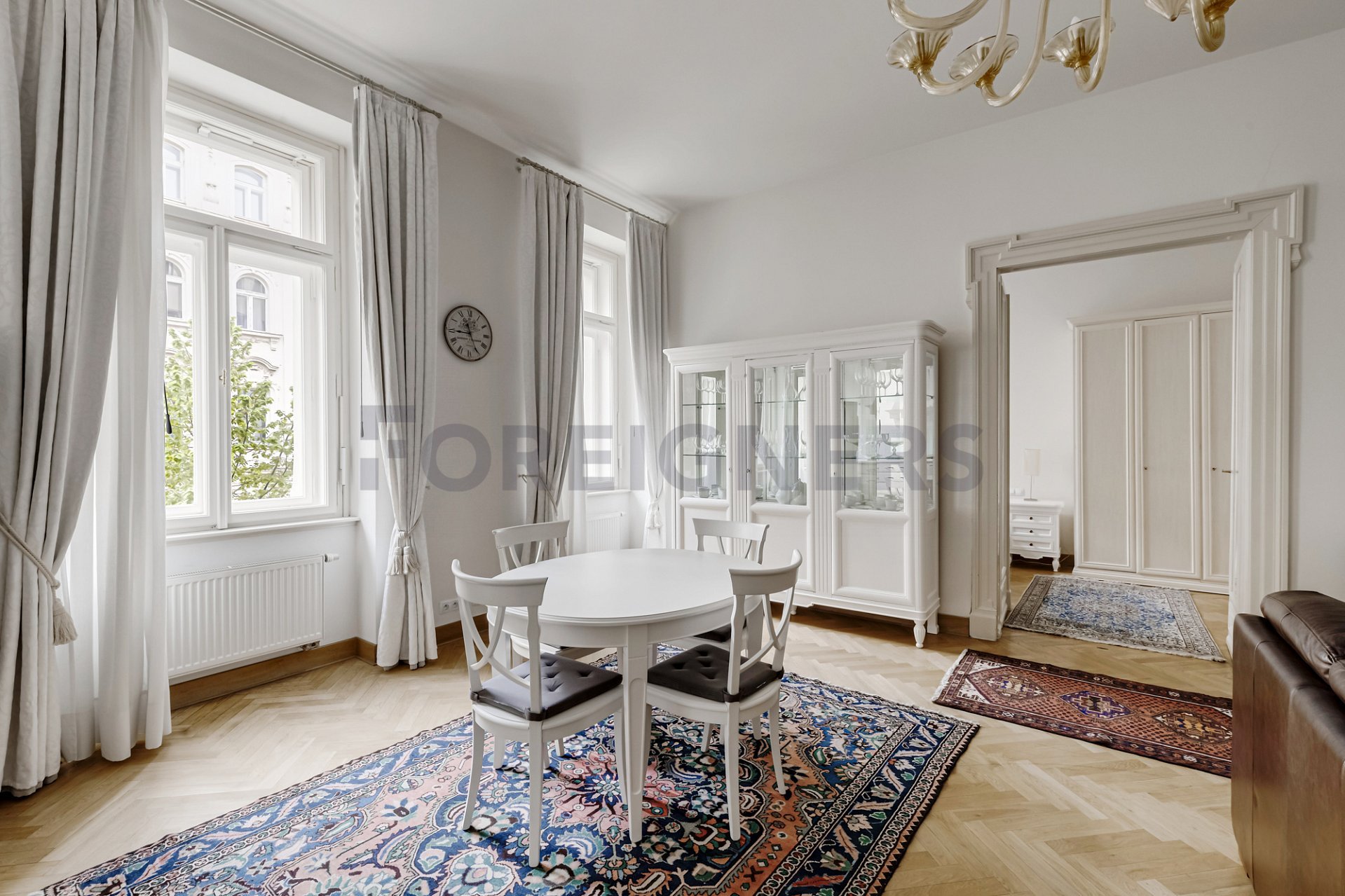 We offer for long-term rent an elegant, fully furnished apartment with a 2+1 layout with a total area of 78 m², located on the 2th floor of a representative historic building after complete renovation with an elevator.