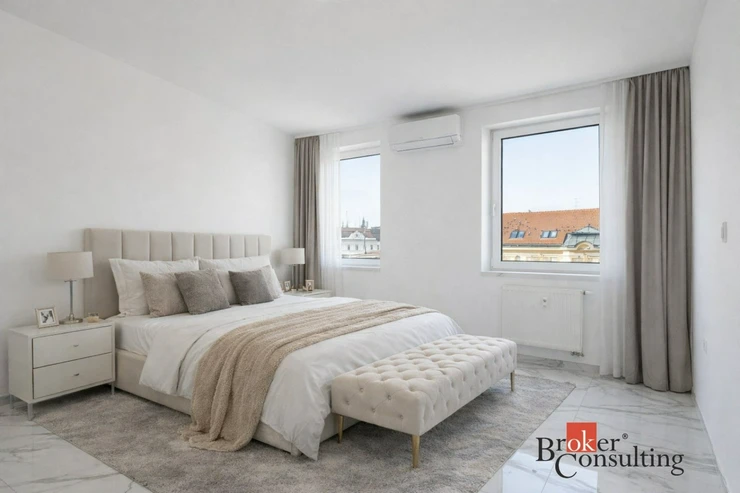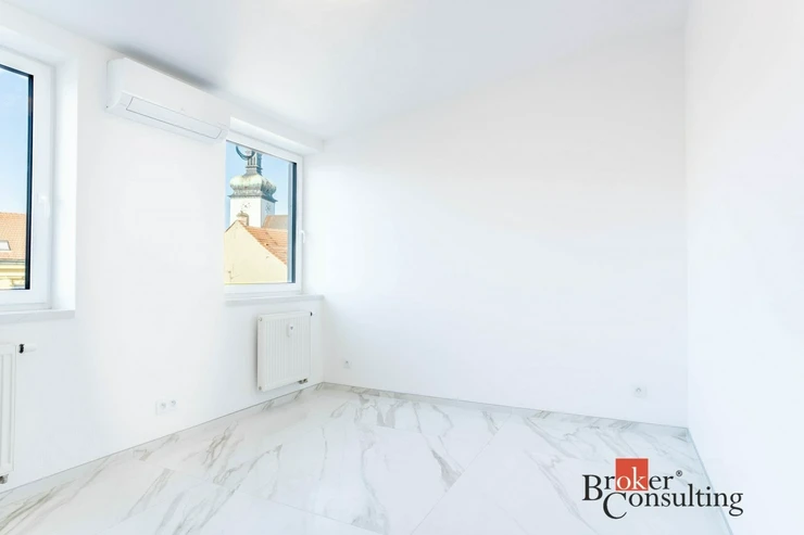 Nabízíme k pronájmu exkluzivní, luxusně zrekonstruovaná a kompletně klimatizovaný byt na ulici Koblížná 3 o dispozici 4+kk s celkovou výměrou 200 m², z toho 95,3 m² činí podlahová plocha a 104,7 m² představují prostorné venkovní terasy. Nemovitost se nachází v samotném srdci Brna na ulici Kobližná a nabízí kombinaci moderního designu, nadstandardních materiálů a mimořádně světlého, vzdušného interiéru. V celém bytě je zároveň připravena instalace venkovních žaluzií.