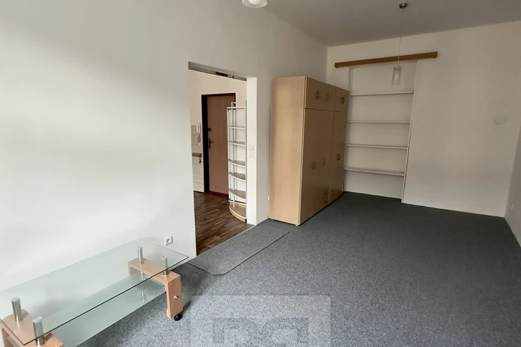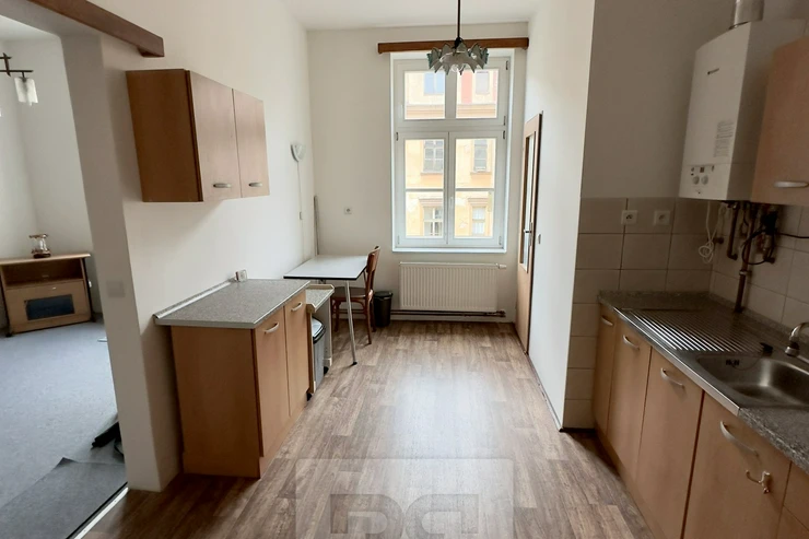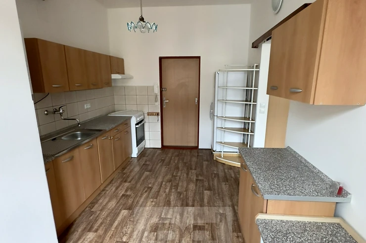 We offer you for rent an apartment located on the fourth floor of a building without an elevator - Petřínská Street. Before entering the apartment there is a common hallway for two apartments, there is a shoe rack with a hanger. The apartment consists of a room with a kitchenette equipped with a gas stove, electric oven and fridge with freezer, a bathroom with a shower and toilet and another spacious room. The windows are oriented to a quiet courtyard. Water heating and heating with a gas boiler.