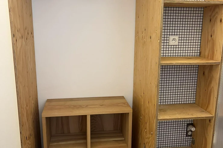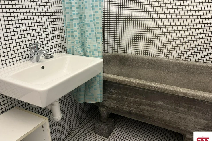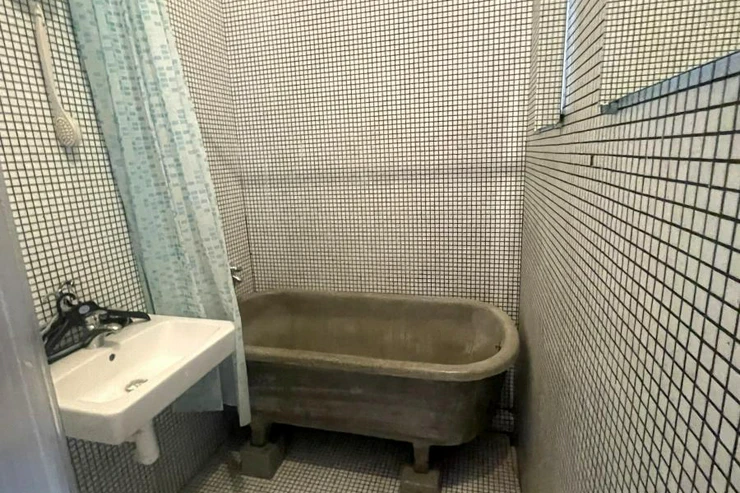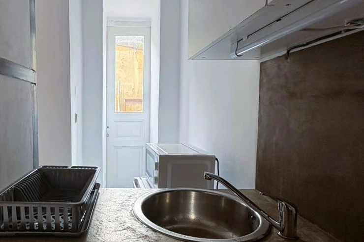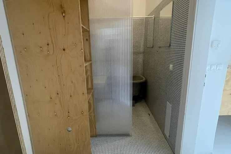The apartment is bright, with a large window and access to a quiet courtyard of the house, which brings natural daylight into it. The apartment consists of an entrance hall, a small bathroom with a bathtub and a sink, a separate toilet, a partially separated kitchenette from the main room, there is 1 built-in floor, which is used for sleeping.