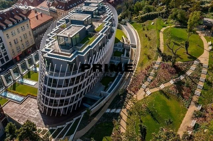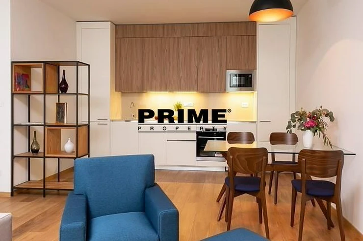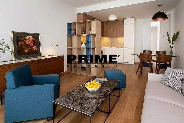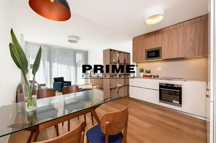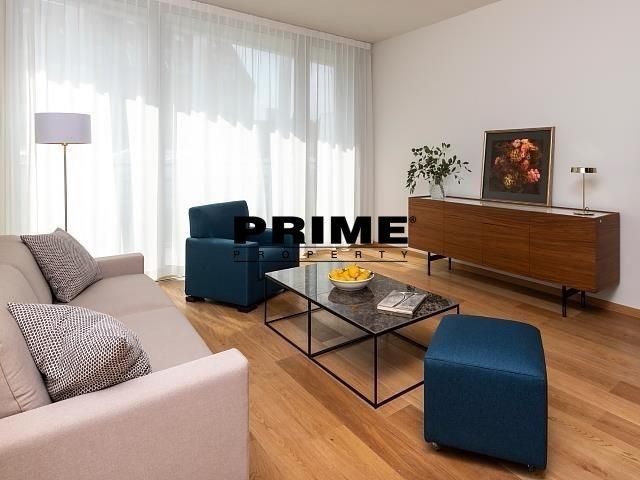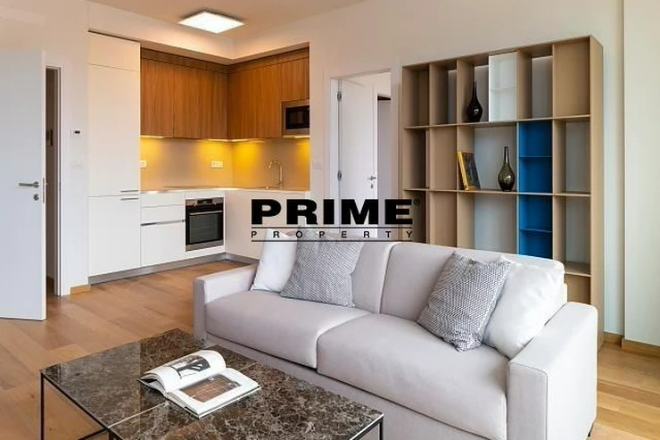 Available for long term or short term rental. Brand new, exclusive, 1 bedroom, 1 bathroom, fully furnished apartment for rent, 2+kk, 59m2, with a 19m2 terrace and the possibility of a garage parking space, situated on the 2nd floor with a lift of a newly built residential complex with a central reception desk, a wellness club (an indoor swimming pool, a sauna and a terrace with sun loungers), a shared garden with benches and underground parking.