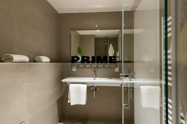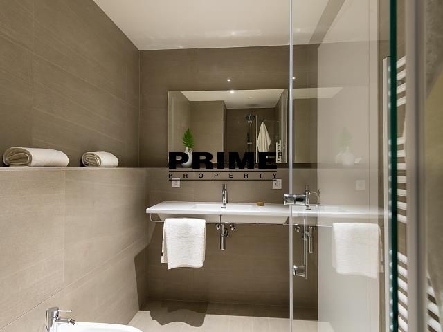 NB: The interior photographs are illustrative from a similar apartment in the building. The property comprises: an entrance hallway, a living room (29m2) with a dining area and an open, fully fitted Italian kitchen with appliances (electric induction cooking hobs, electric oven, fridge freezer, dishwasher and a microwave oven), dishes, pots and pans and kitchen utensils and with access to the terrace (19m2), a 16m2 bedroom with access to the terrace, an en suite bathroom (bathtub, shower cubicle, sink, toilet and a bidet) and a separate WC. Wood parquet and tiled floors. Heat recovery ventilation, under floor heating system, internet, video entry phone, alarm system.